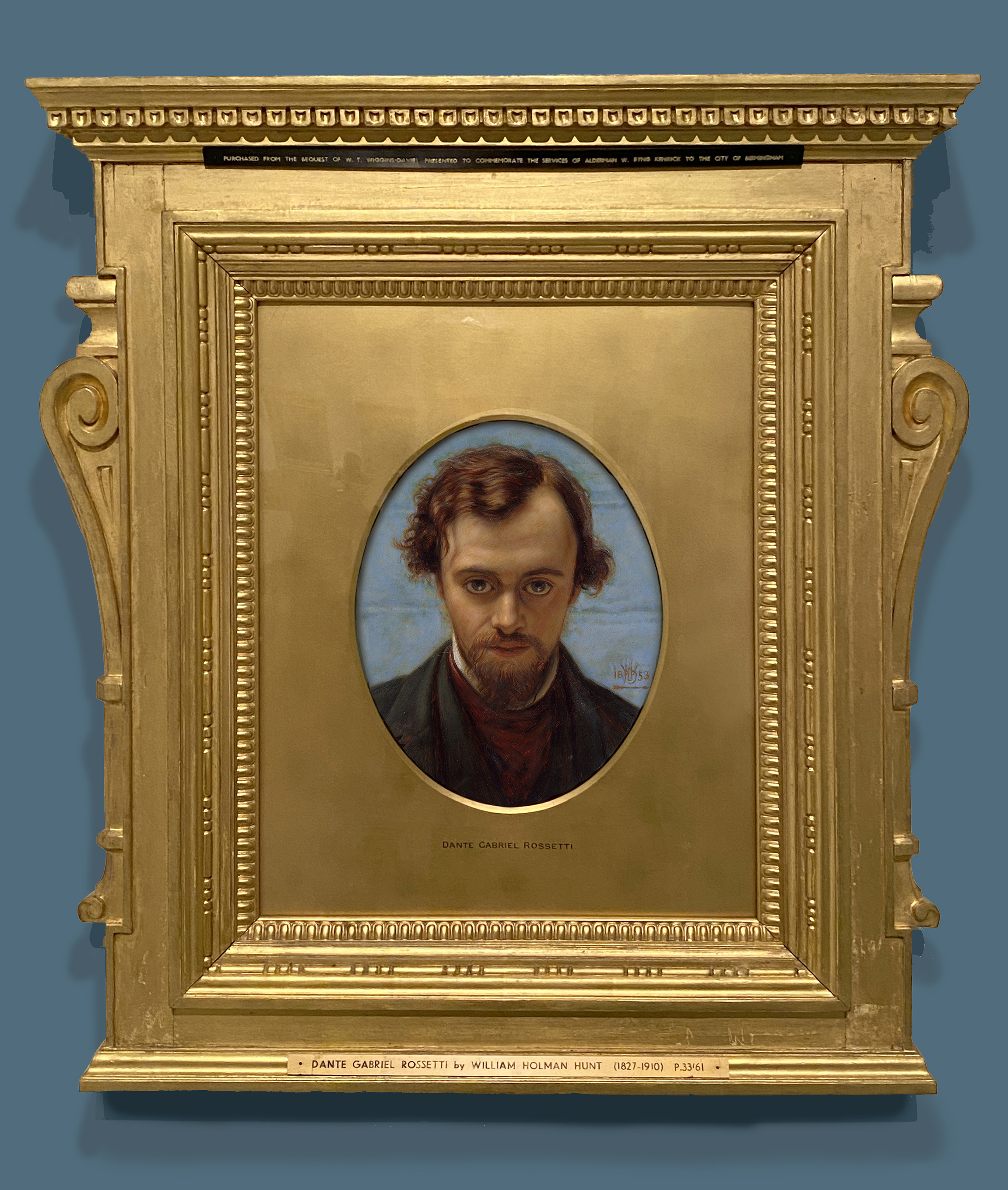 The Pre-Raphaelites were probably the most continuously productive group of artists since the 17th century who insisted on frames specifically designed for their paintings: frames which could stand out from a mass hang in exhibitions, enhance the meaning of the work with inscriptions and symbolic motifs, provide an aesthetic interval between painting and wall, or reflect the period and place of the painted subject. And amongst the Pre-Raphaelites, the most imaginative and continuously inventive designer of frames from c.1851 to 1904 was William Holman Hunt.