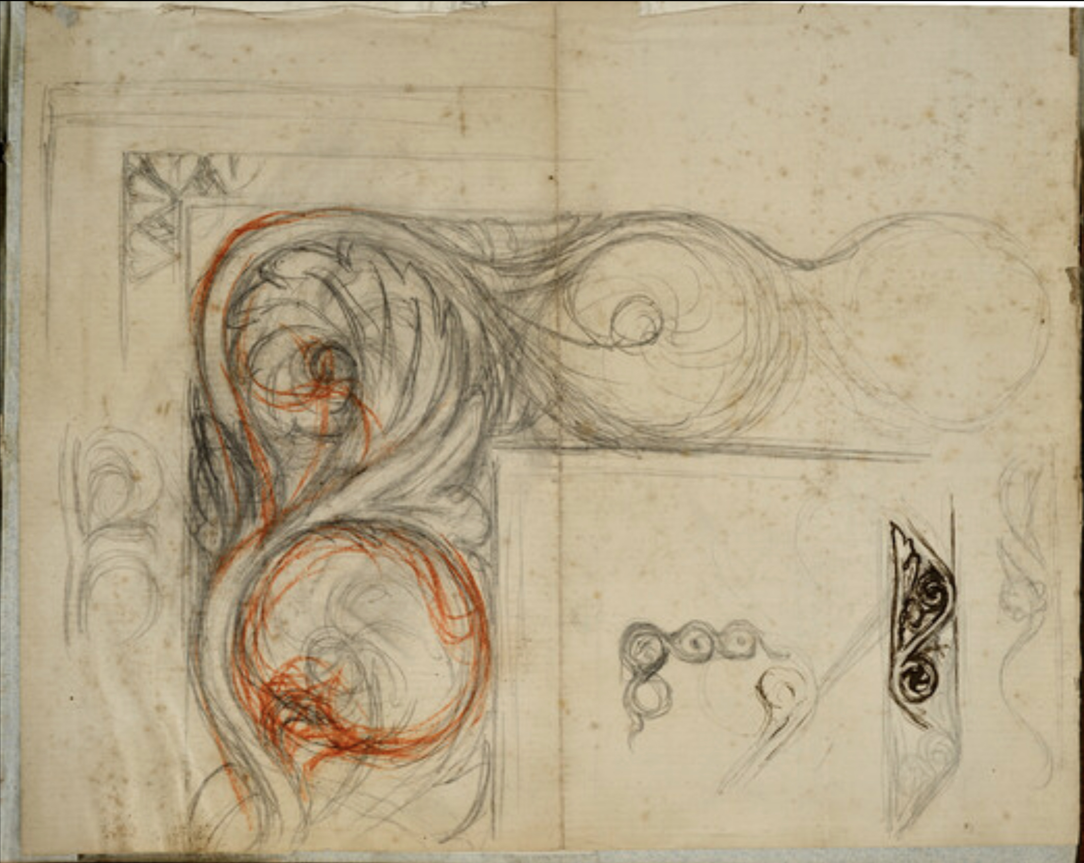 Holman Hunt (1827-1910), drawing of picture frame, c.1869, 17 x 12.7 cm., Ashmolean Museum