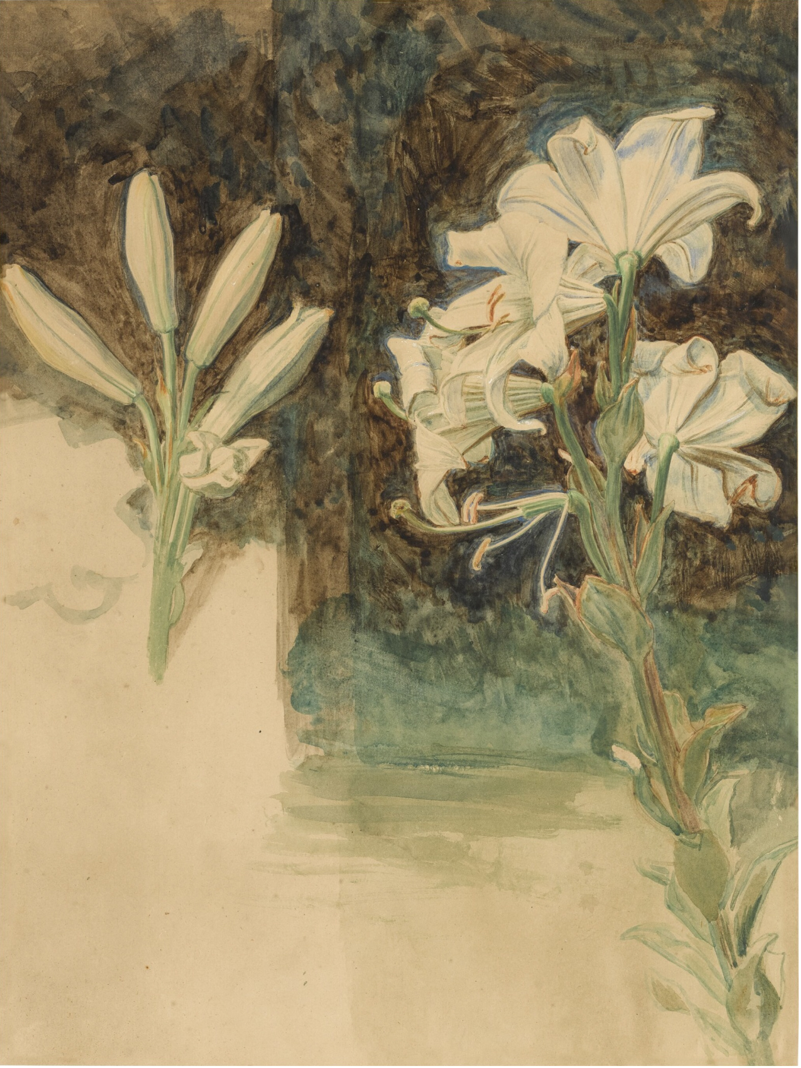 Holman Hunt (1827-1910), study of lilies, watercolour, 39 x 30 cm., Sotheby’s, 14 July 2021, Lot 62