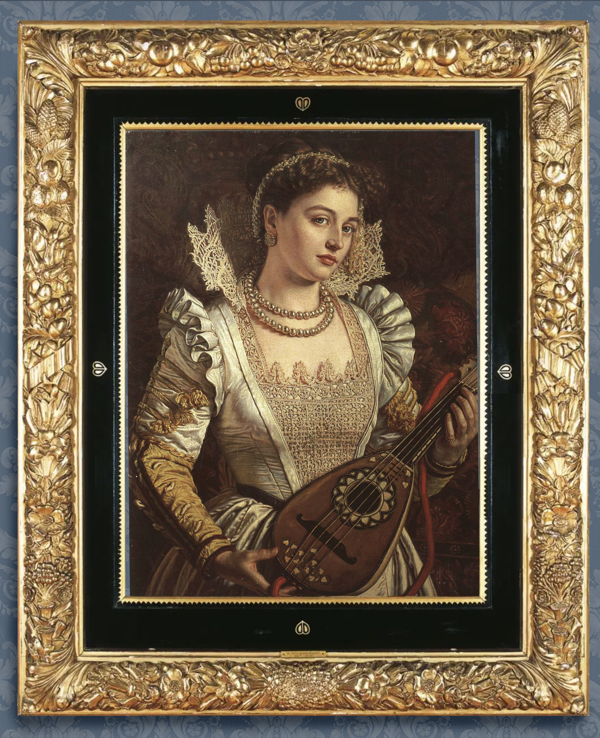 When we consider the revolutionary impact which the very young members of the Pre-Raphaelite Brotherhood must have had on contemporary academic art (the landscapes painted en plein air in brilliant greens[1], the lack of idealization of the human figure, the direct engagement with social problems, literary subjects depicted realistically, rather than romantically), there’s an additional aspect of their work which has often been neglected – the idea of the work of art as a whole object completed by its frame.
