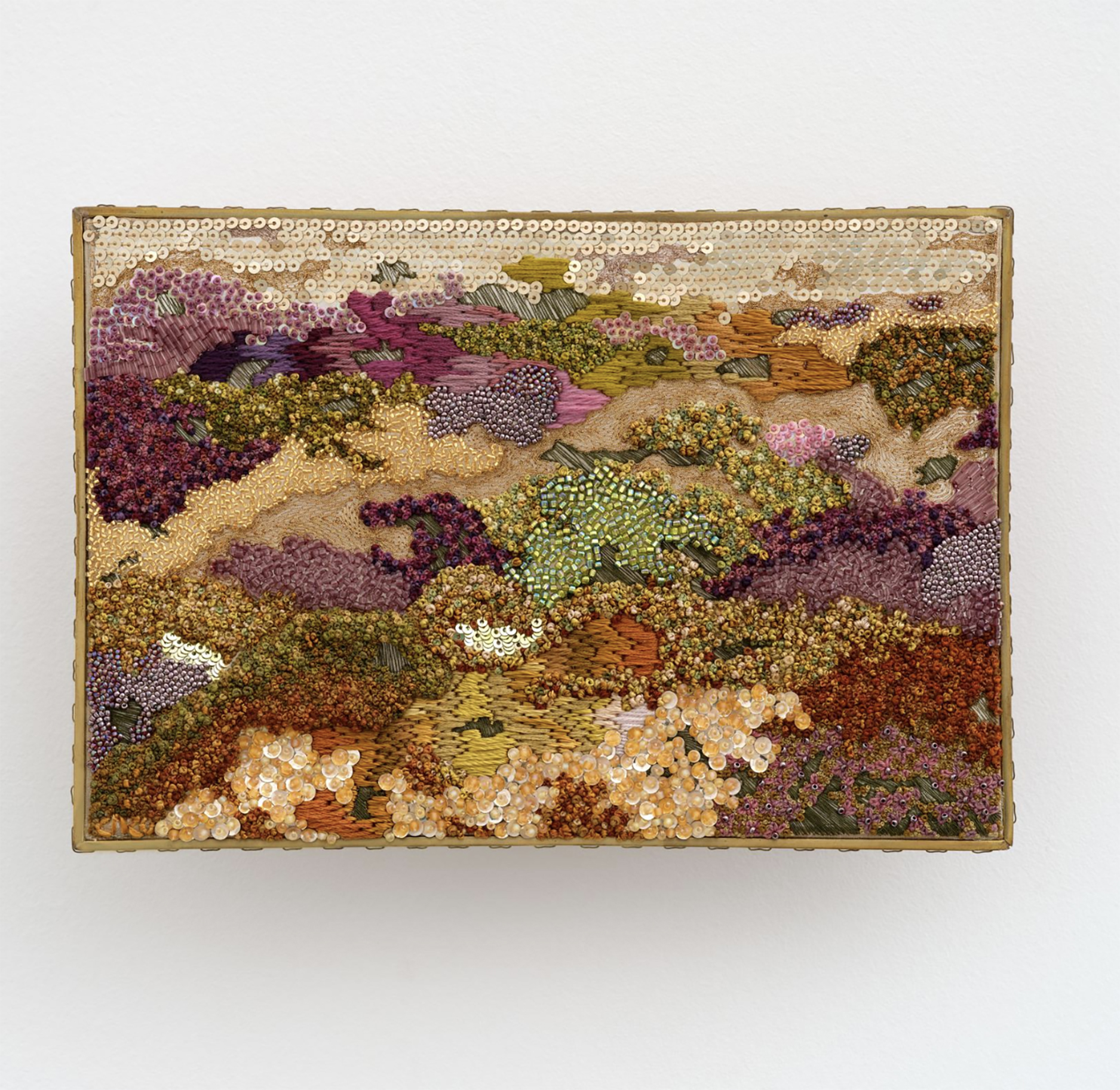 CARO, Duin, 2019, brass, organza, thread, sequins, beads, 6 x 8.5 x 2 ins, Sarah Brook Gallery