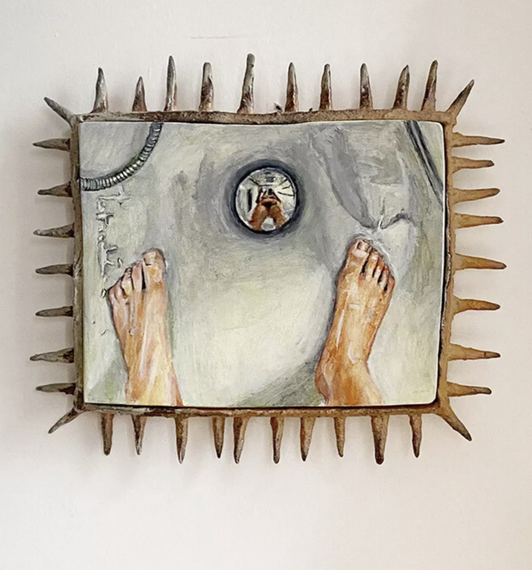 Jenna Rothstein, Nude, 2024, acrylic on wood, ceramic, 22.9 x 27.9 x 2.5 cm., Harsh Collective, Brooklyn