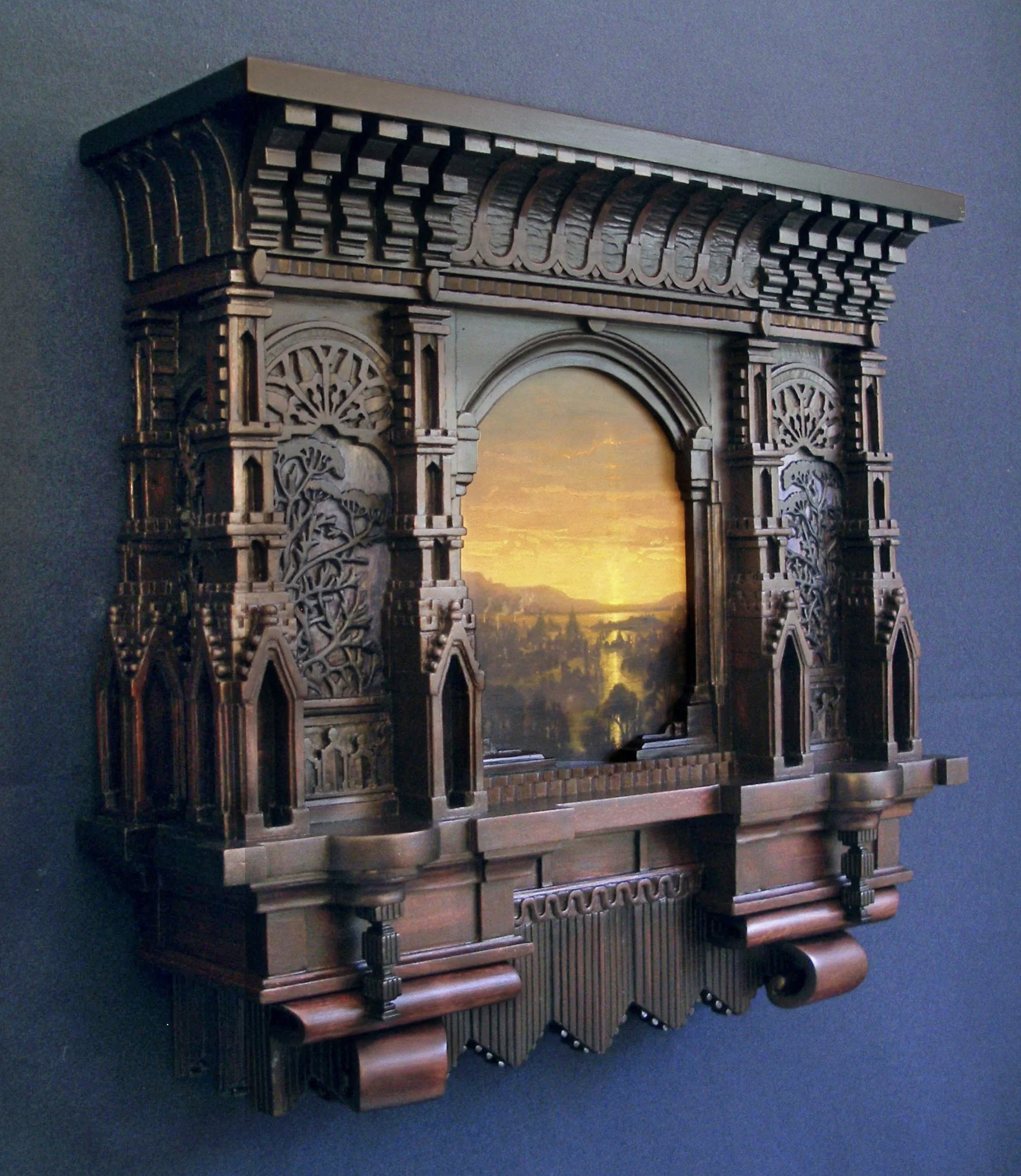 She began to build frames which fused with the painting, at times even including doors which opened and closed over her paintings – often German Romantic-inspired landscapes.