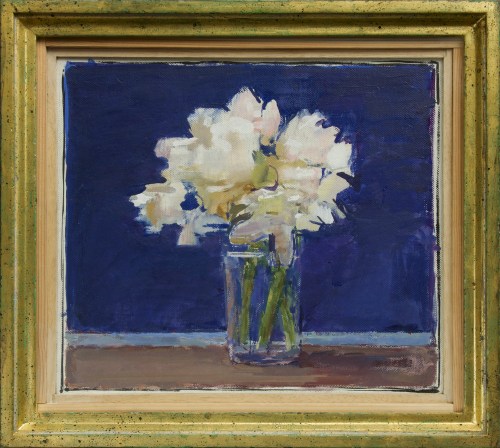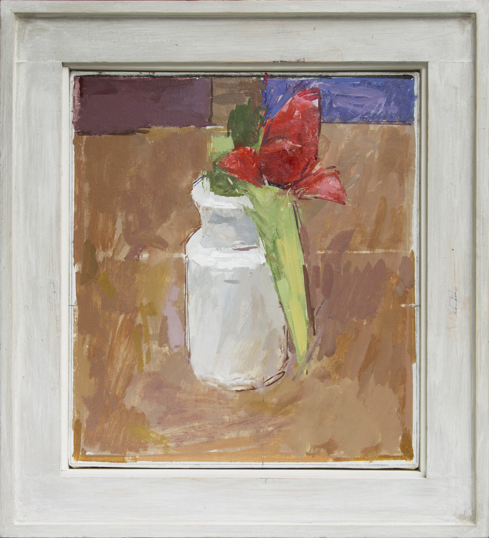 Ben Henriques, Tulip in a white jar, o/c, 13.78 x 12.2 ins (35 x 31 cm.)
