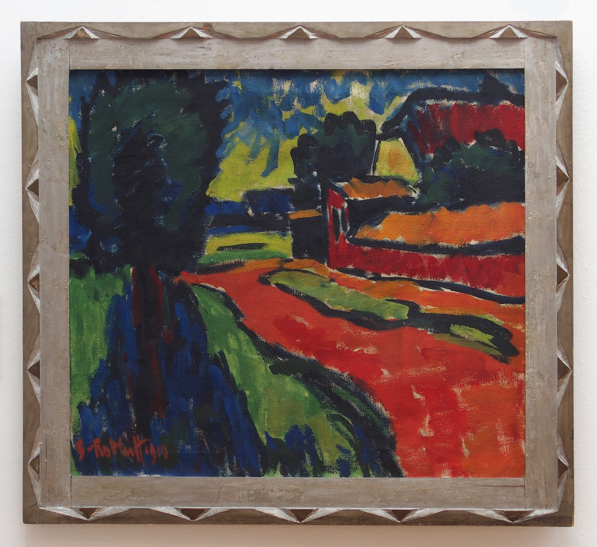 Karl Schmidt-Rottluff (1884-1976), Dorfecke (Village corner), & detail, 1910, o/c, 76.5 x 84.5 cm., & detail, Brücke Museum, Berlin