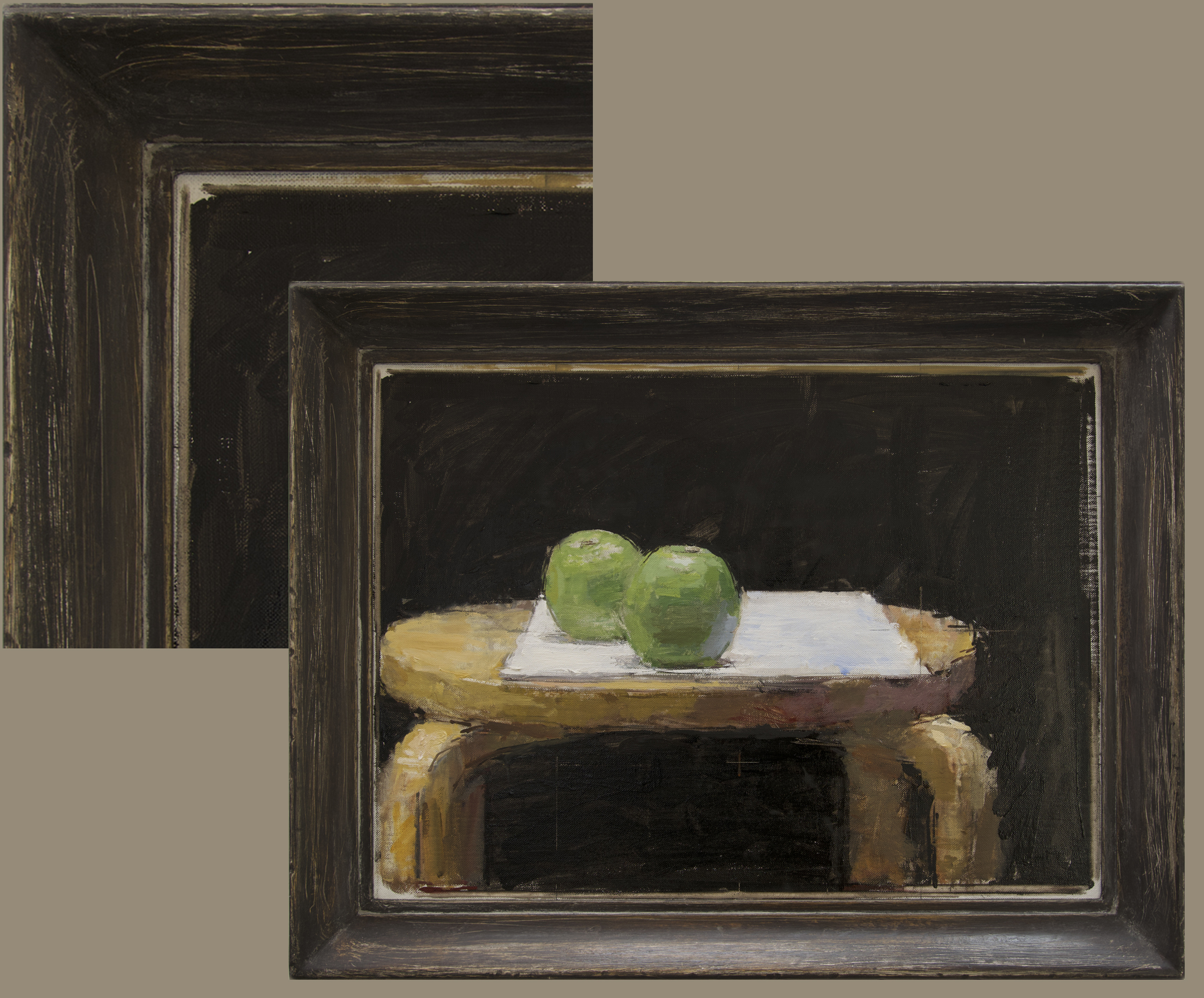 Ben Henriques, Green apples, o/c, 16 x 21.18 ins (40.5 x 53.8 cm.), and detail of frame