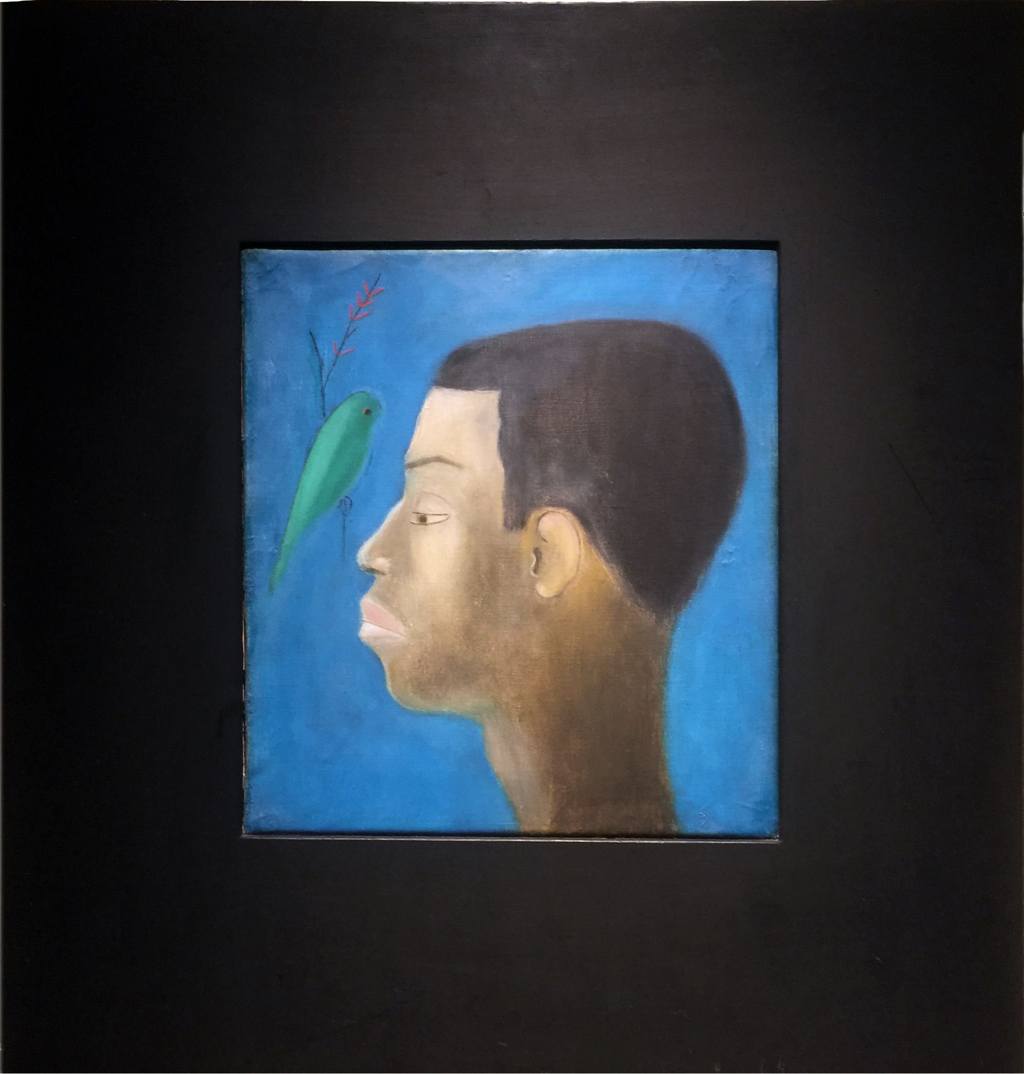 Craigie Aitchison (1926-2009), Alan McNaught with a bird, 1970, 12 x 11 ins (30.5 x 27.9 cm.), and reverse, Piano Nobile, London