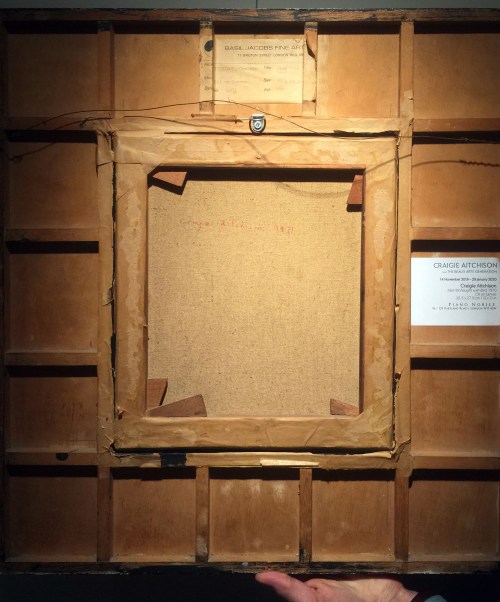 In fact Craigie Aitchison used all sorts of profiles, from all kinds of places. Perhaps an expert would be able to identify the date of the work by the style of the frame, I don’t know. He used austere flat plate frames with no edge mouldings in the 70s, revival Spanish cushion and reverse profiles in the 80s, and Netherlandish-style ripple mouldings; some of these are eclectic and some almost kitsch. There was a great show of his work in all these varied frames put on recently by the London art dealer, Piano Nobile.