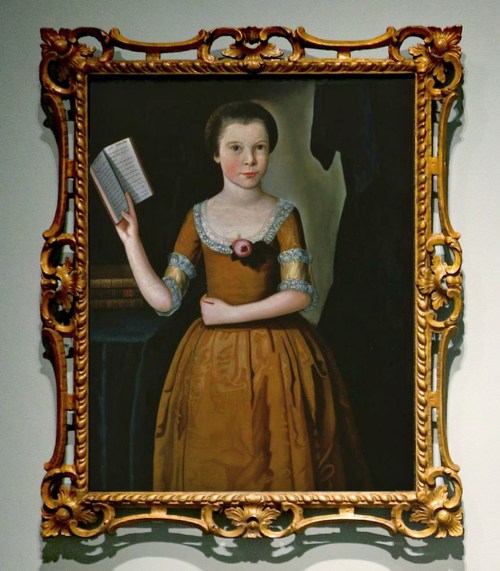 Function was combined with the greater simplicity which was in any case expected of Puritan communities in the New World. Fashions in clothing and jewellery tended to be regulated, so that only the families of land-owners of a gentle class might wear the more luxurious items, and even these were subject to limits under the sumptuary laws. For instance, in this portrait of the Mason Children by the Freake-Gibbs Painter, who worked in Boston in the 1670s, the little girls are limited to a single slash in their oversleeves [5]. In the same way, the painting style is deliberately simplified, in overt reaction to the opulent Baroque language of Catholic Europe; and the frame limited to the understated mouldings common in England in previous centuries, especially in the world outside the court. For similar reasons, progressive fashions in furniture, following the European styles of the time, seem to have been discouraged – and probably could not be easily or swiftly imitated, being so far away in space and time. Thus the first colonial frames, where they have survived (‘approximately forty portraits of merchants, ministers, civic officials, and their families remain’ from the 17th century [6]), are, until quite a late period, in the style of the unadorned frames of Tudor and early Stuart England.