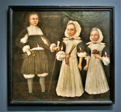 For these settlers, the paintings they took with them would be, as Hawthorne observed, the early family portraits which formed their various pedigrees, as well as pictures of immediate family left behind in England. The Shrimptons of Boston, for instance, were sent by her father, Nicholas Roberts, portraits of Mrs Shrimpton’s parents from England; this was in September 1674, and these first two paintings were followed the next year by portraits of the couple themselves, and of Mrs Shrimpton’s grandmother and sisters: