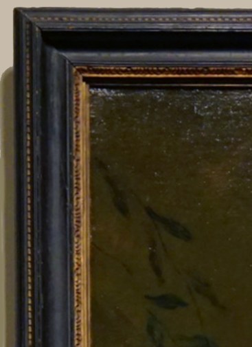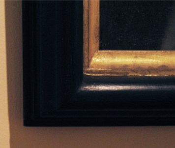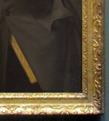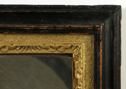 It is thus still quite common on 18th century portraits, such as Joseph Badger’s 1757 Portrait of Lois Orne, and in fact it persisted well into the 19th century, particularly on provincial works. Although the profile of the frame on Badger’s painting could hardly be plainer and less ornamented, it is also a Baroque architectural moulding: a deep torus offset by an inner gilded cavetto. The combination of sculptural simplicity with the dramatic contrast of black and gold helps to define the painting and project it from its setting. It is a successful style, paradoxically both restrained and assertive; but it was also an economic choice – the prices that Badger was charging for his paintings in the mid-18th century (five guineas or £5.25 for all four portraits of Lois and her siblings, and £6 for each portrait of her parents [7]) indicate that the frames would have been correspondingly reasonably priced.