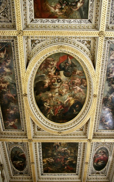 One outcome of this trip was the Banqueting Hall in Whitehall, the ceiling of which was executed several years before Rubens was commissioned to fill the panels with paintings, and which is basically a collection of giant picture frames ornamented with classical architectural mouldings, and reminiscent of the arrangement of ceilings in, for example, the Palazzo Ducale in Venice.