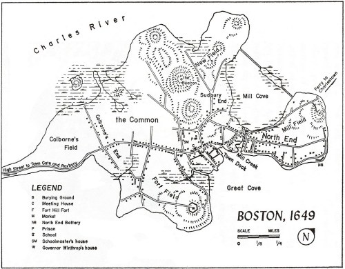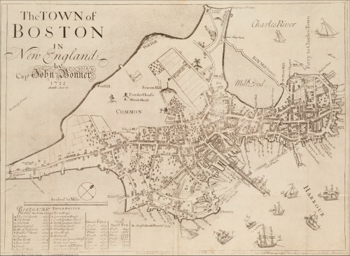Map of Boston by Captain John Bonner, 1722, The West End Museum, Boston
