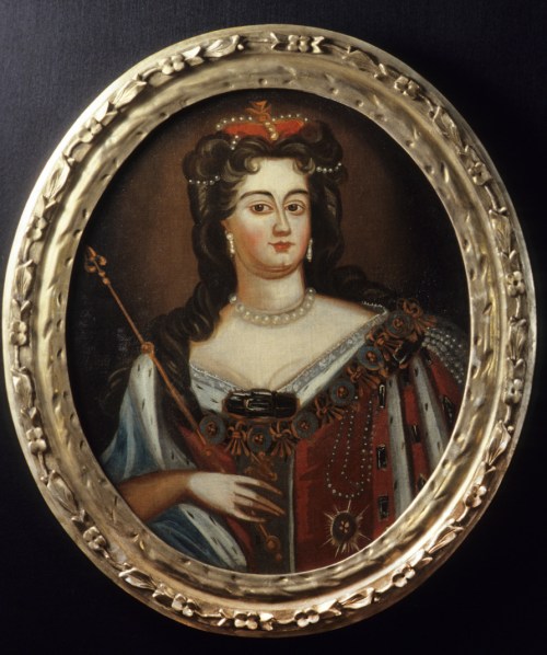 Sir Godfrey Kneller (1646-1723), Queen Anne, c.1702-04, in British oval panel (‘Lely’) frame, Royal Collection RCIN 405614