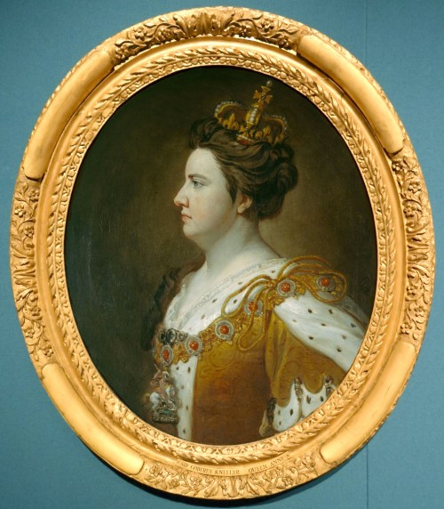 Cooper was not the most subtle of portraitists; his paintings were evidently based on engravings of the official coronation portraits by Kneller and his studio, some of which would presumably have been sent out to the governors of the various American states (the engravings themselves must have travelled quite as widely). Below the level of the governor’s house there would have been many institutional buildings springing up – town halls, meeting houses, schools, courthouses, universities – which would have wanted their own royal portraits and would compound for the most wooden of icons, which in Cooper’s case bear a strong resemblance to 19th century inn signs.