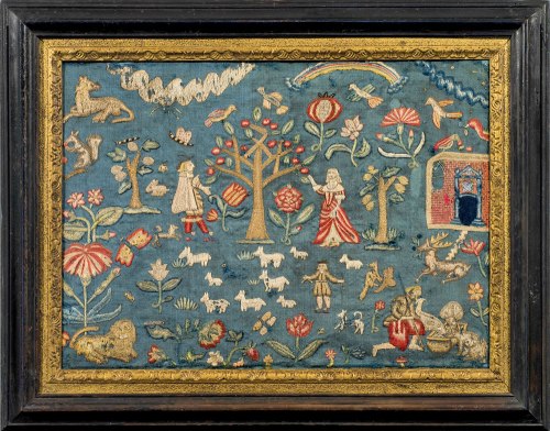 Other influences included melting cartouches and zoömorphic motifs from engraved borders or architectural features; these coalesced into the Auricular style of frame, which grew in popularity – again, in court circles – from the mid-1620s [8]. However, the genesis of these styles in the Stuart court and their fashion amongst Stuart nobility precluded them from travelling to the New World in any quantity, or from influencing the styles of home-grown framing which were being established there. They would also have been associated both with Catholic opulence and pagan decadence, inimical to many of the settlers.