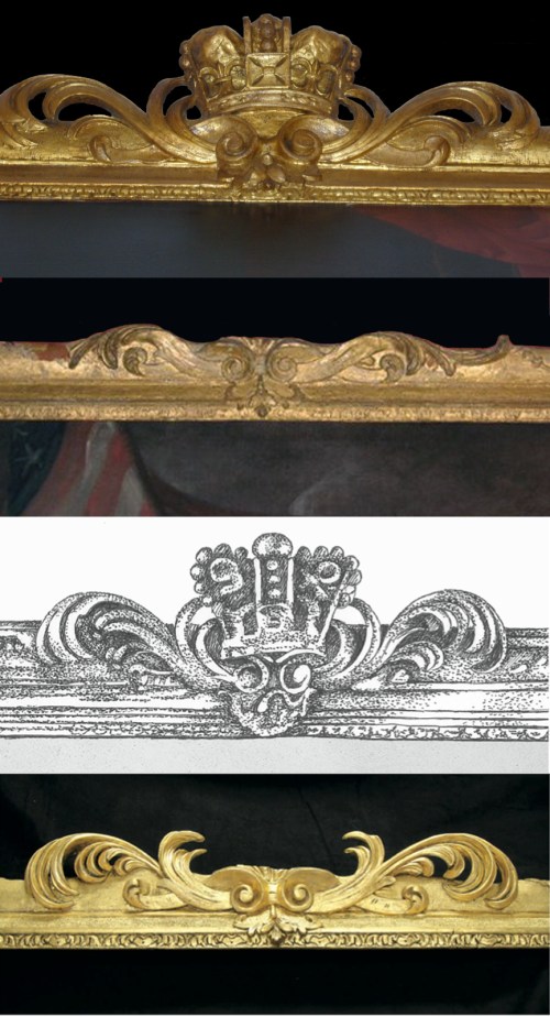 Back in Britain, the commissioning of elaborately-carved and gilded frames – in the sphere of the royal court, at least – had grown rapidly from relatively early in the 17th century. The influence of Italian fine and decorative art in Britain had begun twenty years before Charles I acquired the Mantua collection, with his father, James I, and his older brother, Henry (heir to the throne until his death in 1612). Both the latter began to bring European masters into the country; and the Earl of Arundel fortuitously added Renaissance and Mannerist architectural influences when he swept Inigo Jones off to Italy in 1613.