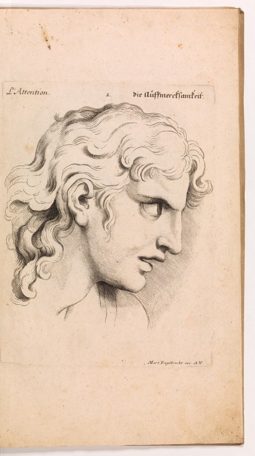 Charles Le Brun (1619-90), Expressions des passions de l’Ame, engraving, published 1732, Martin Engelbrecht, Munich, Metropolitan Museum of Art, New York; title page and ‘L’attention’