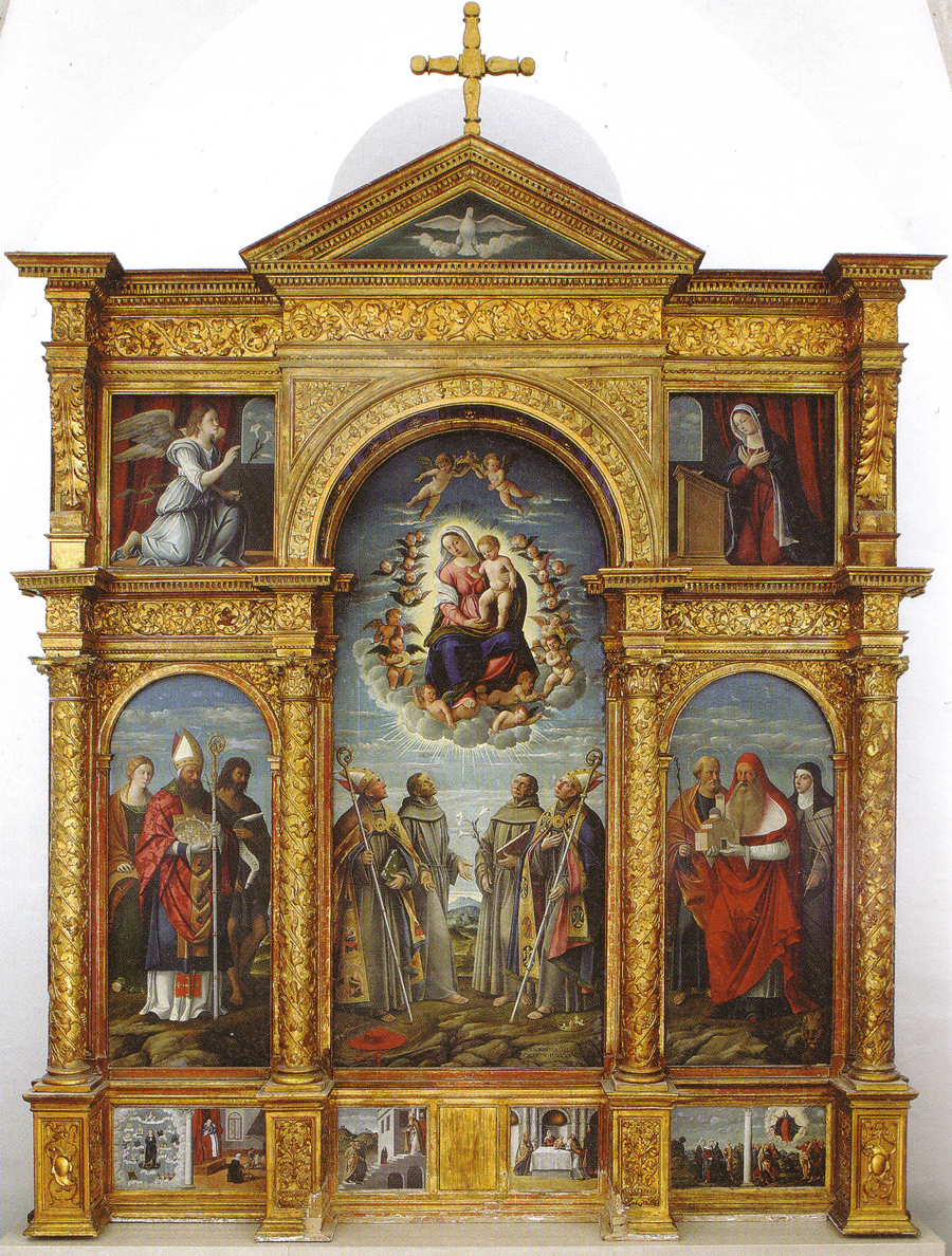 Girolamo da Santacroce, polyptych, The Virgin & Child in Glory with Saints, painted for the Franciscan Convent Assumption of the Virgin, Krk, 1535. Now Church of the Annunciation, Košljun, near Krk.