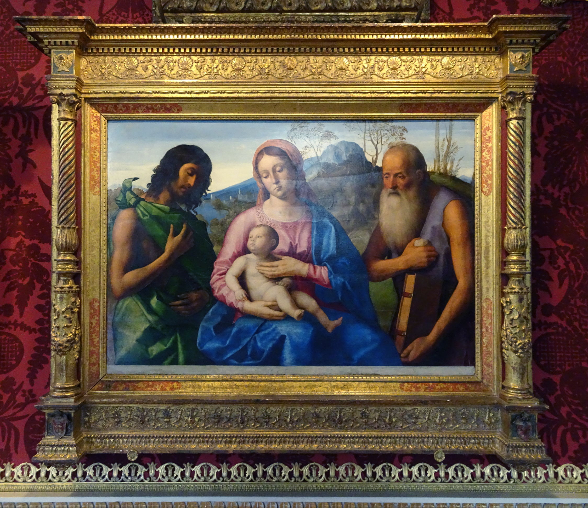 Alvise Vivarini (c. 1445-c.1503/05) & Marco Basaiti (1470-c.1530), Madonna & Child with John the Baptist & St Jerome, late 15th century, frame by Vannoni, Harewood House