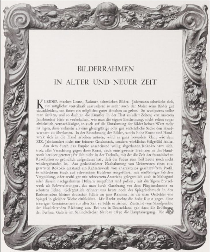 Wilhelm Bode (1845-1929), ‘Bilderrahmen in Alter und Neuer Zeit /Picture frames in the past and present’, Pan, 1898, vol. IV, no 4, pp. 243-256: first page with Netherlandish Auricular frame