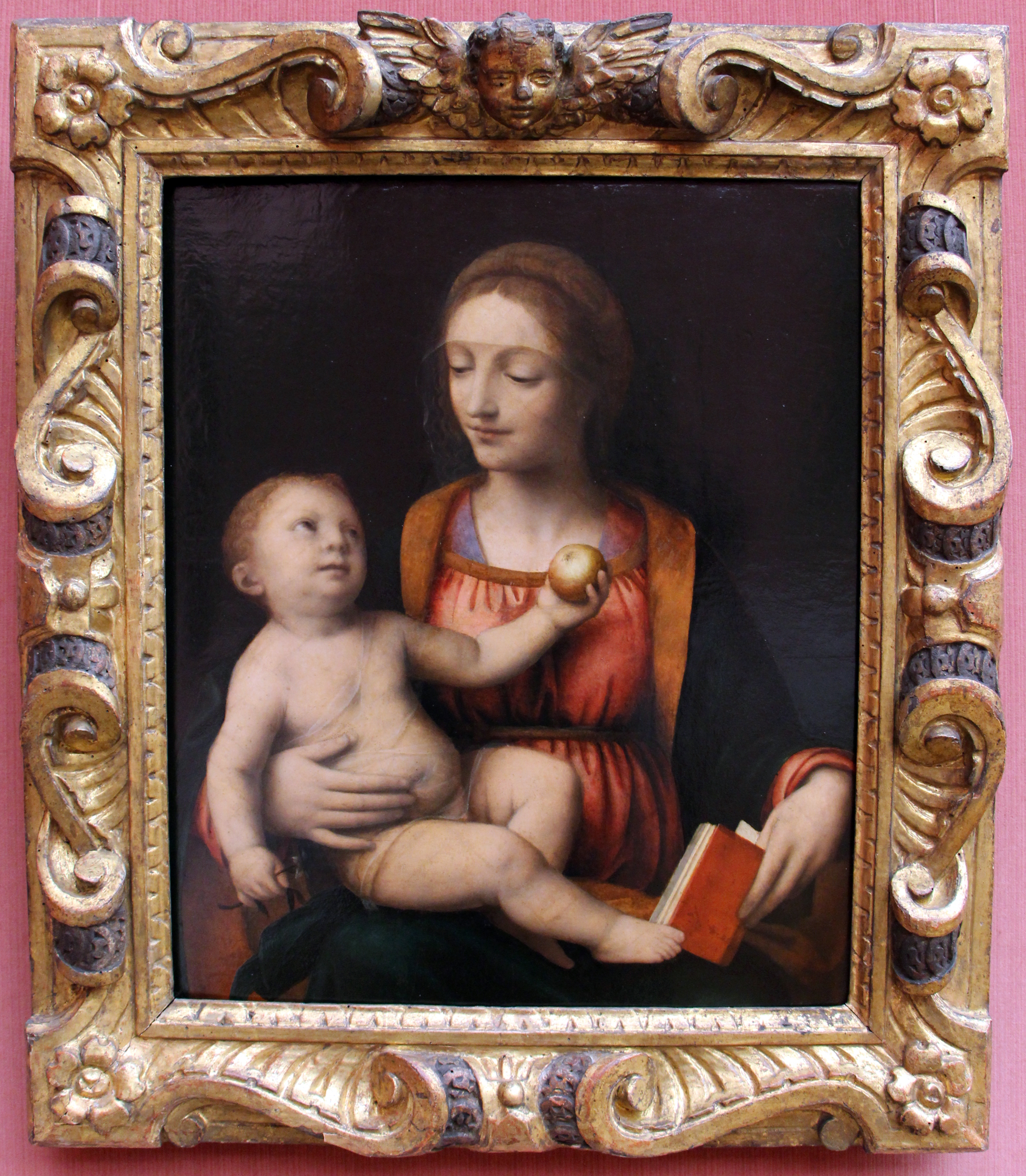 Bernardino Luini (1480-1532), Madonna & Child with an apple, c.1510-25, o/panel, 53 x 42 cm., in the frame illustrated in Pan; Gemäldegalerie, Berlin. Photo: Sailko