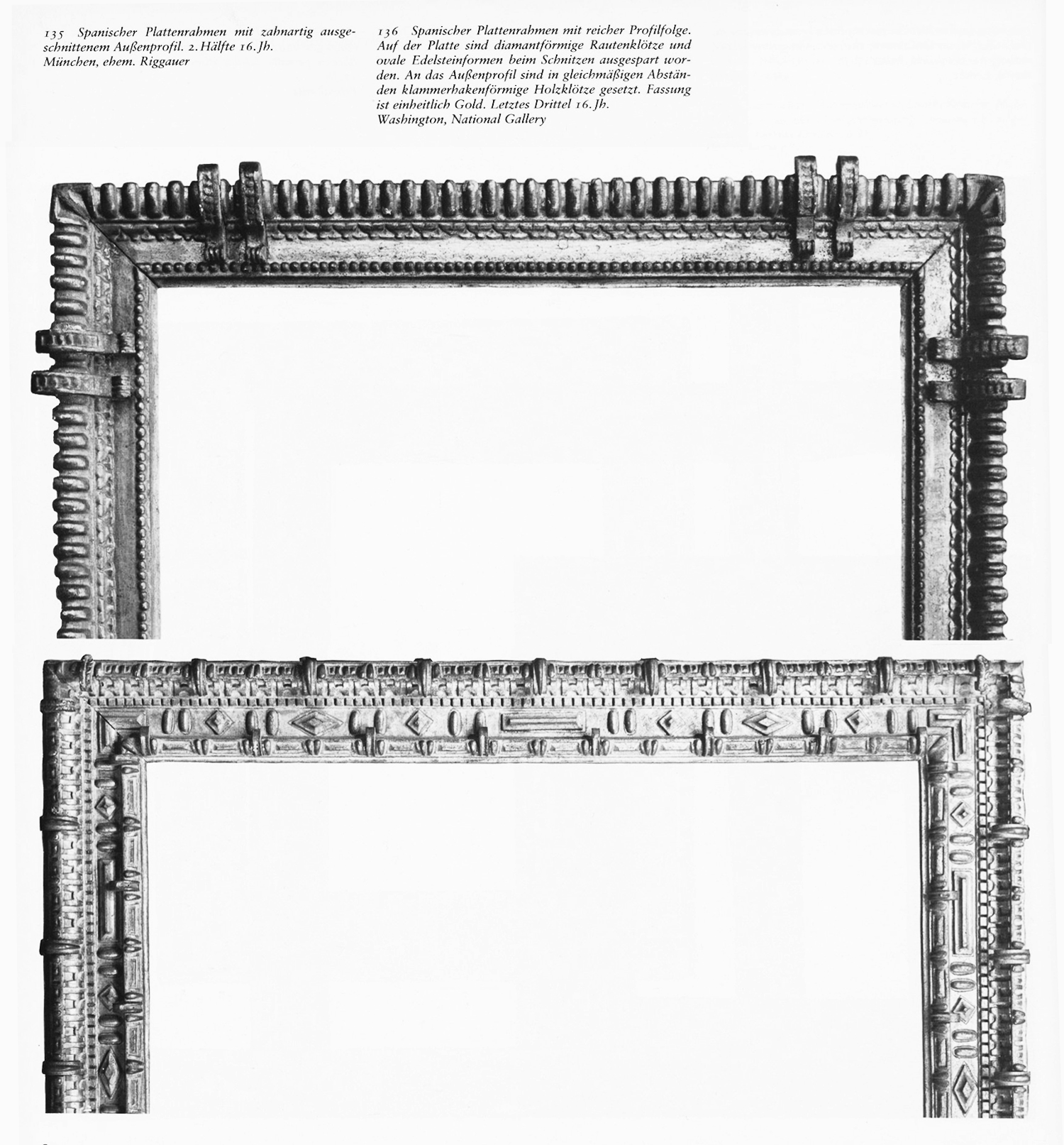 The first of these histories is by Henry Heydenryk, a member of a firm of framemakers which was founded in Amsterdam in 1845, added branches in Belgium and London, and finally in 1936 opened a branch in New York. Heydenryk’s book, The art and history of frames, published in 1963, begins in the 13th century, continues to the later 19th century in Europe, and includes two Spanish frames in its collection of 100 images. For the first time, it also includes a section on American frames from the 18th century, taking the history up to the mid-20th century.