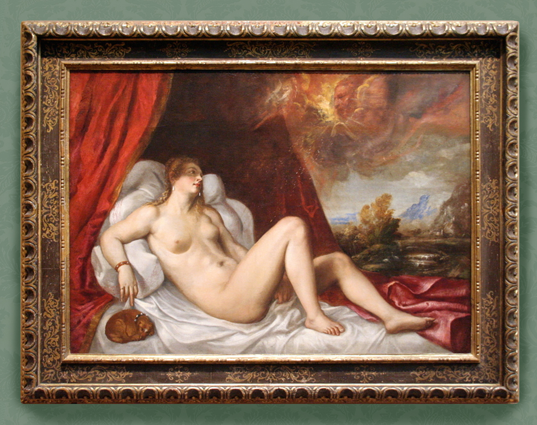Titian (workshop; ), Danäe, cat. no 11 in exhibition, Florentine cassetta, second half 16th century, parcel-gilt and polychrome, Art Institute of Chicago