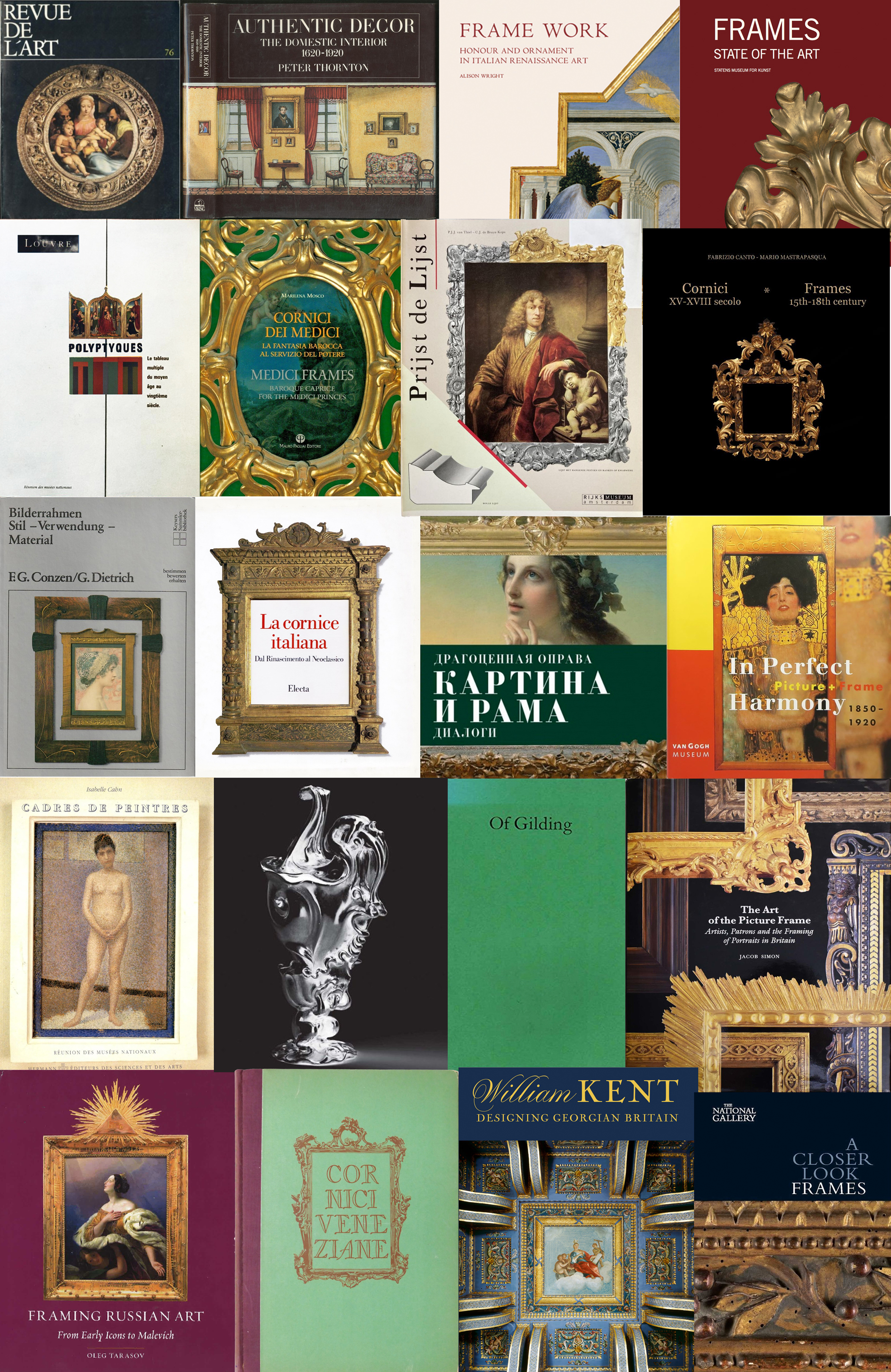 Roberto Lodi & Amedeo Montanari: Repertorio della Cornice Europea: Italia, Francia, Spagna, Paesi Bassi: Dal Secolo XV al Secolo XX, Modena (Edizioni Galleria Roberto Lodi), 2003 (830 colour illus.; 830 profile drawings)