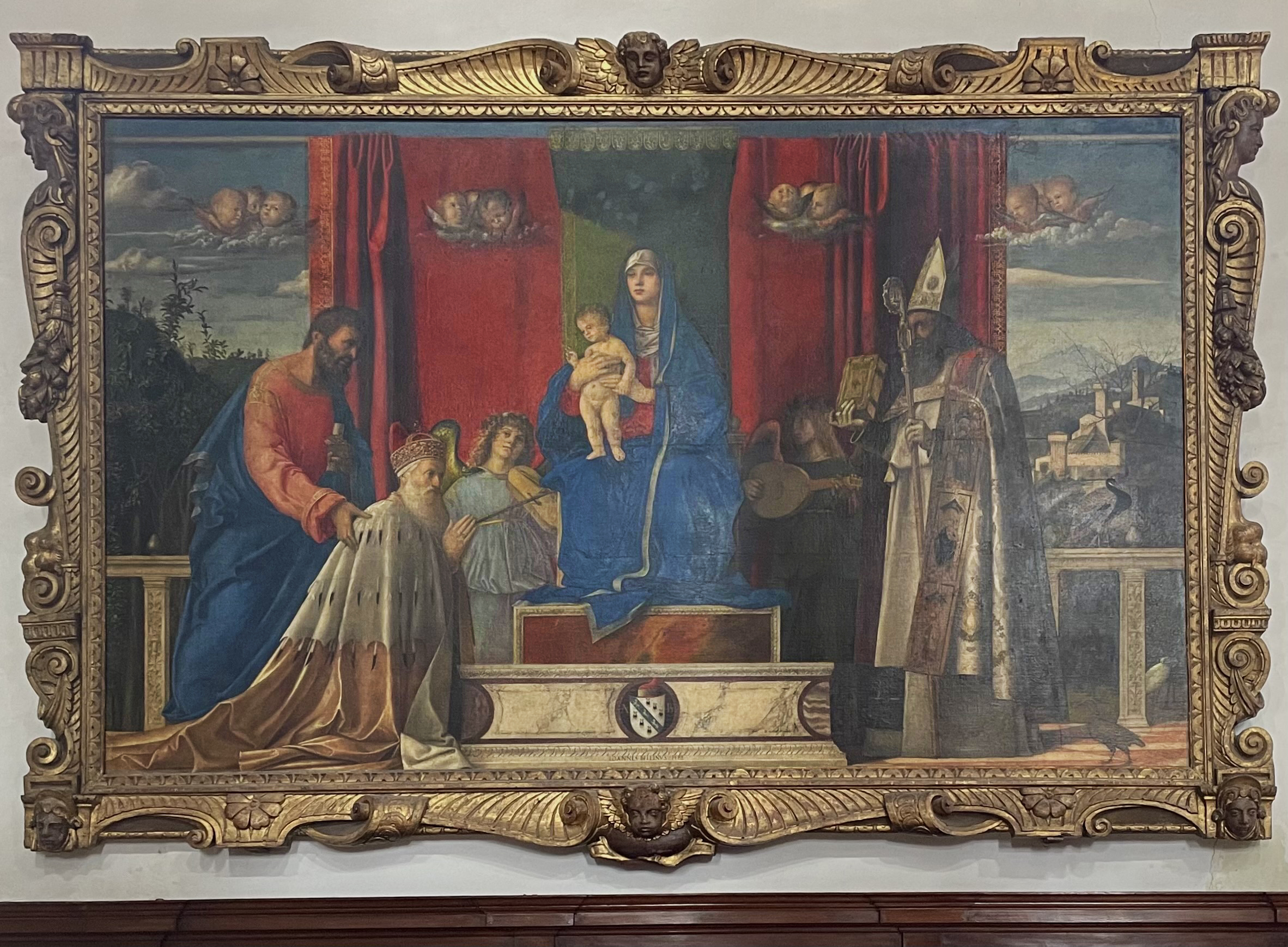 Giovanni Bellini, The Madonna & Child with Doge Barbarigo, 1482, in a later ‘Sansovino’ frame, San Pietro Martire, Murano, Venice