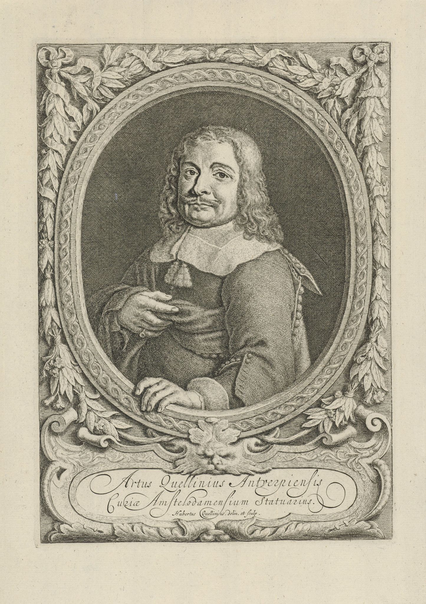 Hubertus Quellinus (artist & engraver; 1619-87), Portrait of Artus Quellinus I (teacher of Grinling Gibbons), from Architecture, peinture et sculpture de la Maison de Ville d’Amsterdam, published 1719
