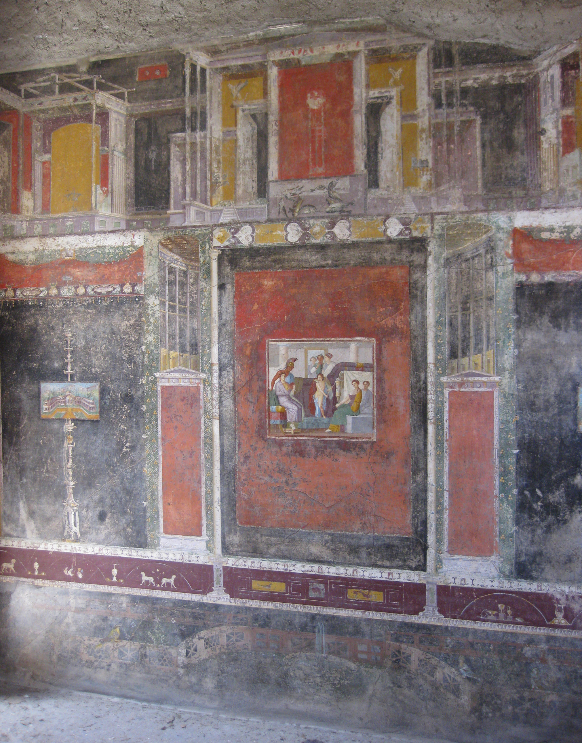 Our most vivid imagery of Roman painting comes directly from its walls: the fresco decorations found at Pompeii, Herculaneum, Ostia Antica, the Domus Aurea, and several more sites where extensive and elaborate wall paintings have been found.