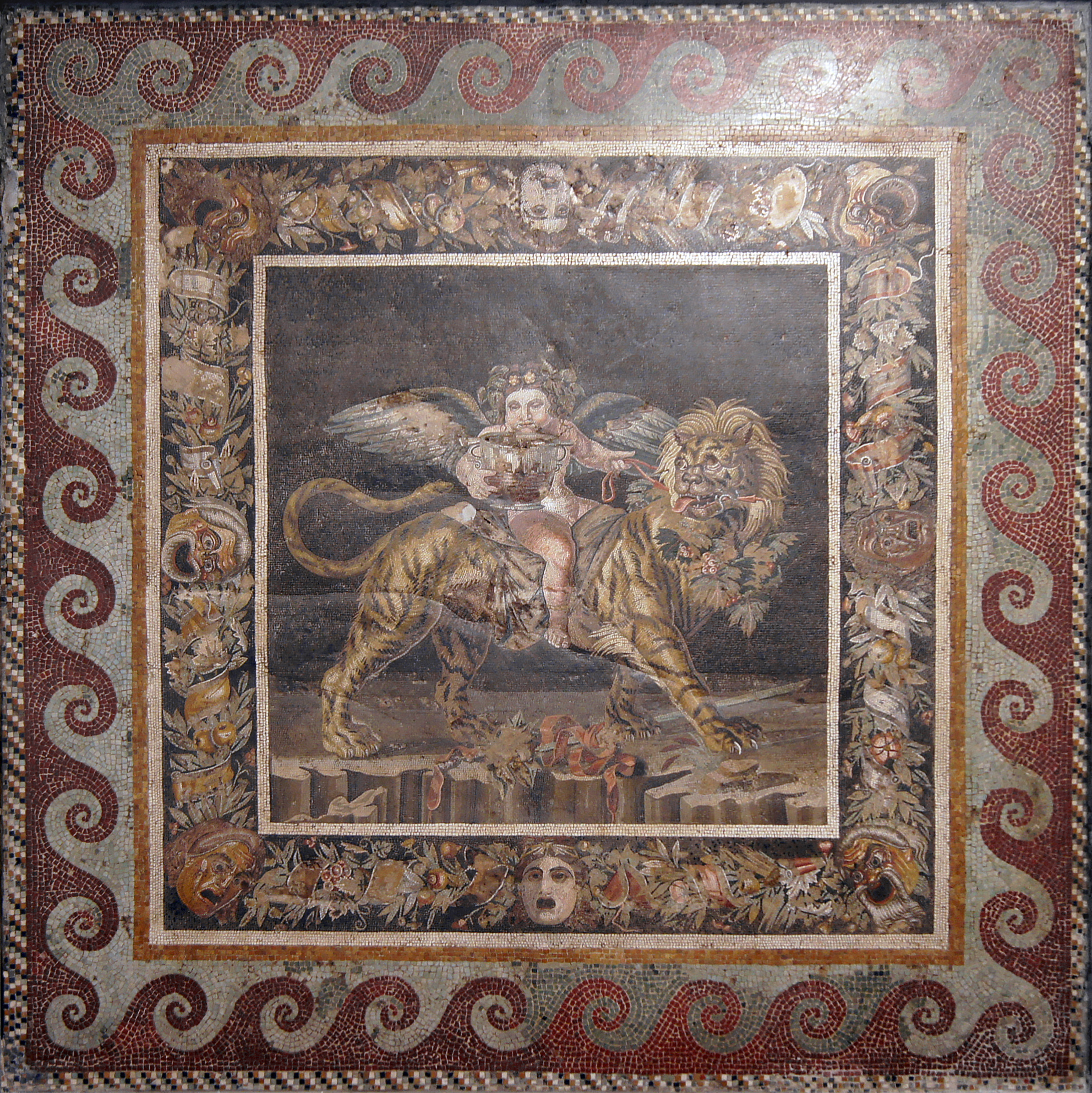 Dionysos and tiger, mosaic, House of the Faun, Pompeii; now Museo Archeologico Nazionale di Napoli