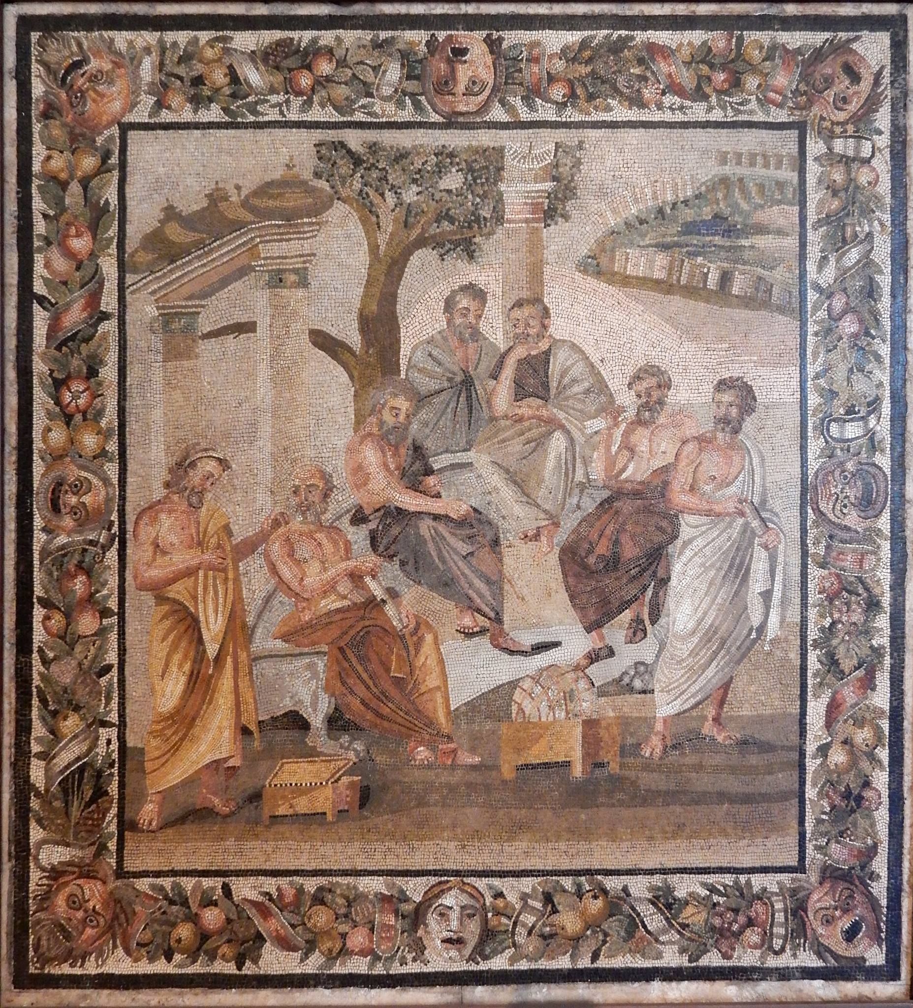 Plato’s Academy, 1st century BC, mosaic, 33.8 x 33.4 ins (86 x 85 cm.), House of T. Simnius Stephanus, Pompeii; now Museo Archeologico Nazionale di Napoli
