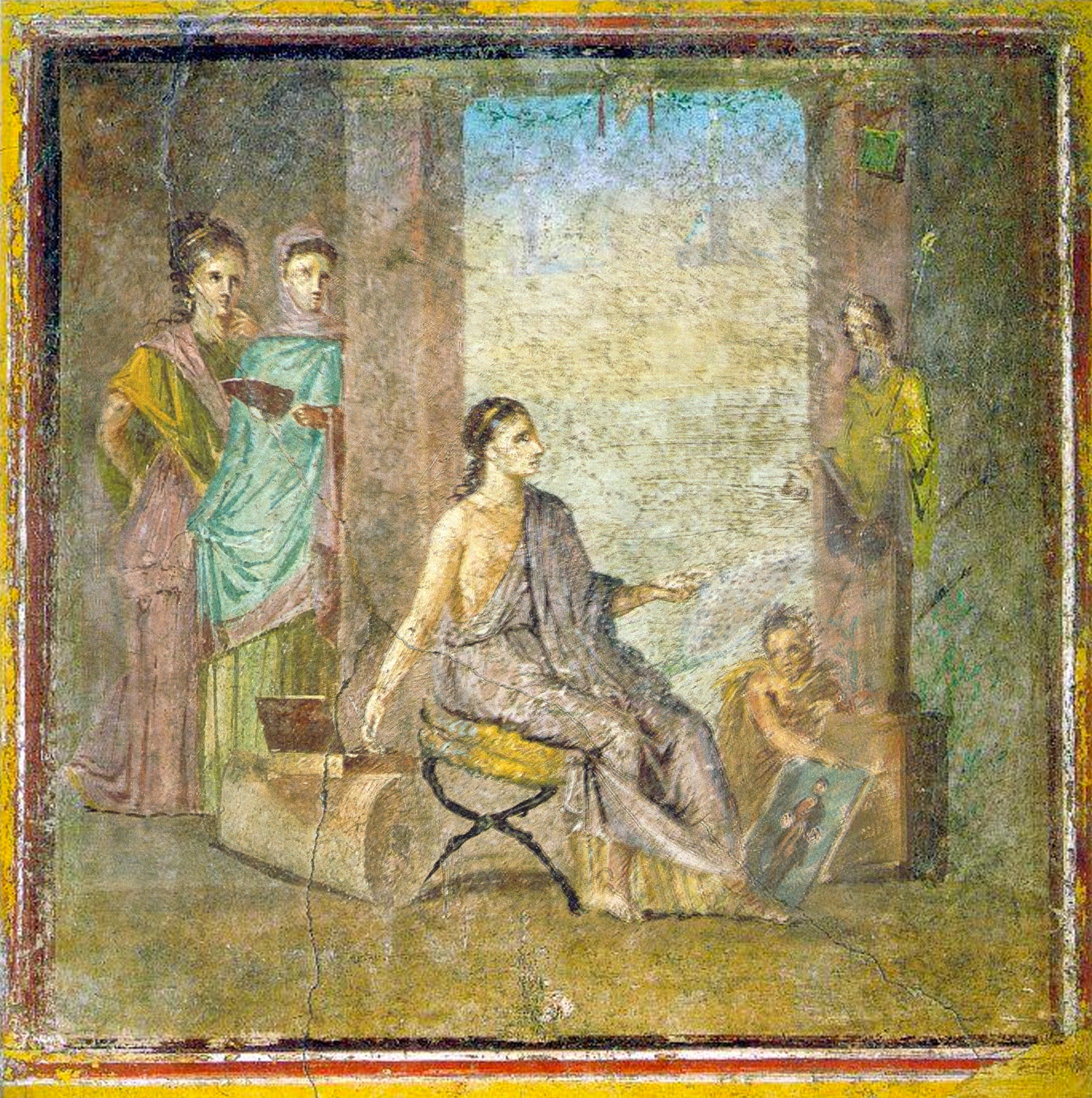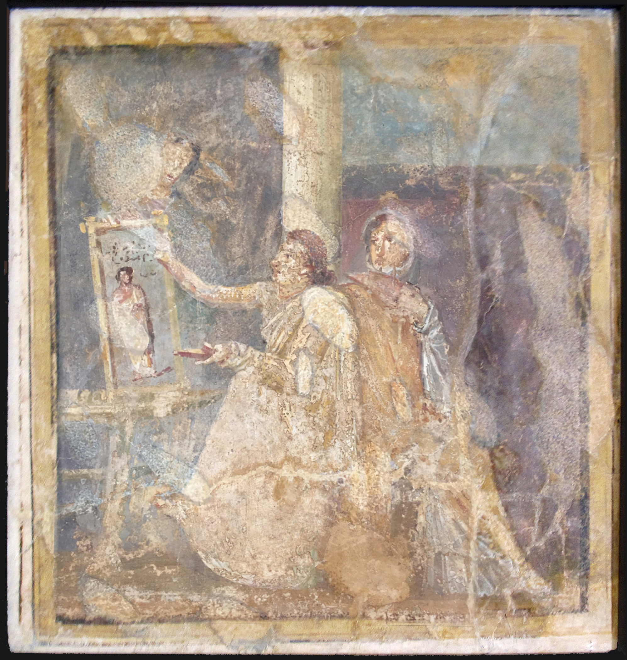A female artist (Iaia of Cyzicus?) painting a picture of a man, 1st century BC, House of the Empress of Russia, Pompeii, now Museo Archeologico Nazionale di Napoli