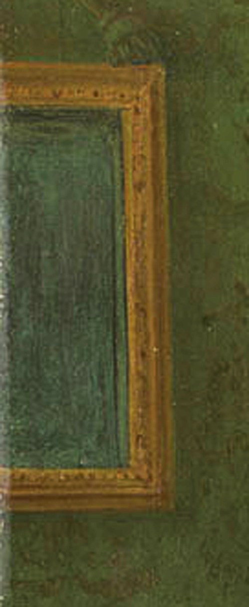 The previous frame may have been chosen because for its echo of the torus of the integral painted frame, and for the way in which the stylized acanthus ornament at the sight edge has a vaguely ‘Spanish’ look in the way the tips of the acanthus leaves are rounded; however, apart from its genesis and anachronistic style, the repetition of the very plain moulding was deadening, and robbed the painting of some of its animation and immediacy. Reframing it in a setting from its own locale and era has restored its authority, and enhanced the dynamic sense of the artist’s presence; the characteristic large leaf corners and centres provide focal emphases which concentrate the viewer’s attention on his face.