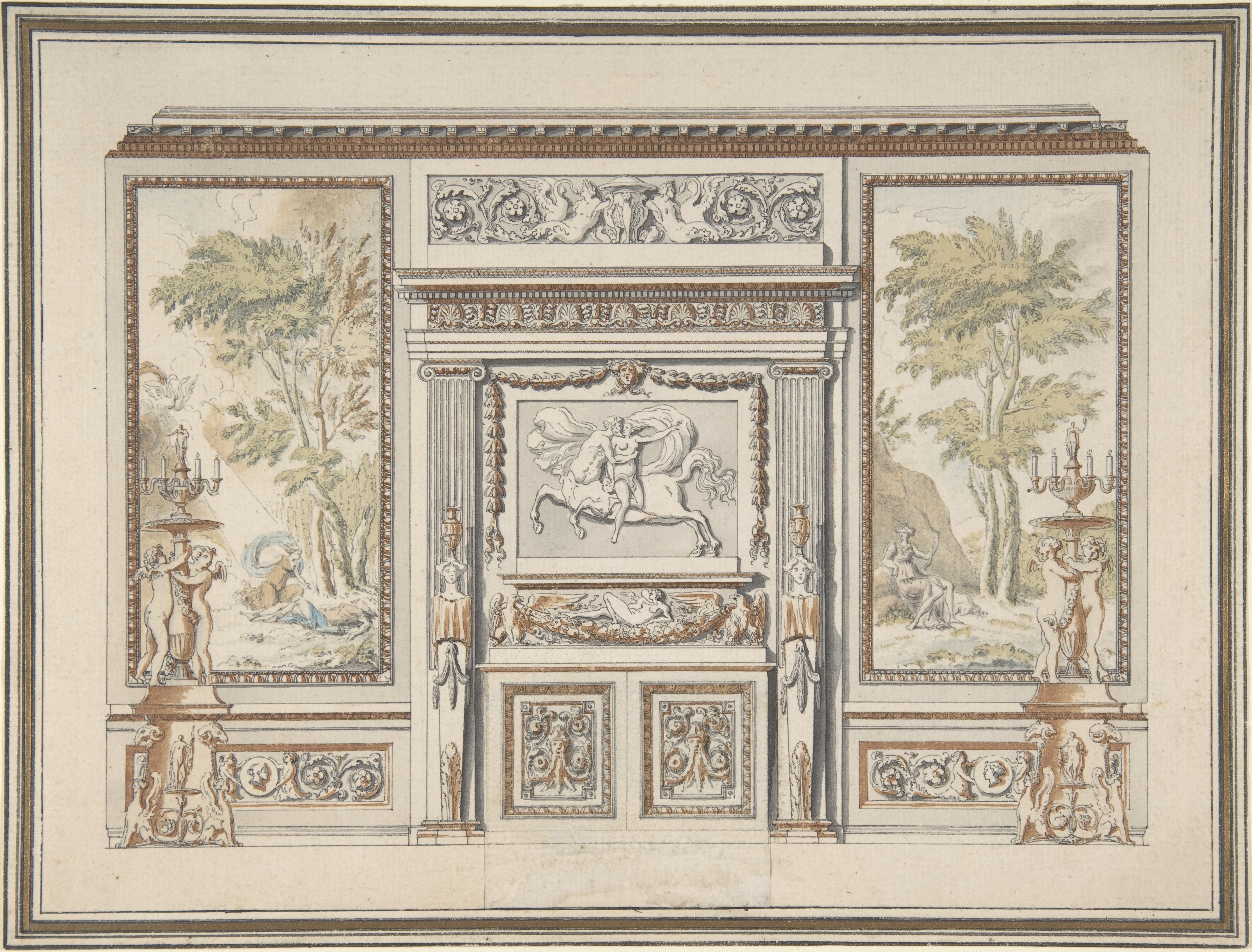 Etienne de Lavallée-Poussin (1733–93), design for a wall elevation, c.1770-80, pen-&-ink, pencil, watercolour, 19.7 x 26.1 cm., Metropolitan Museum, New York