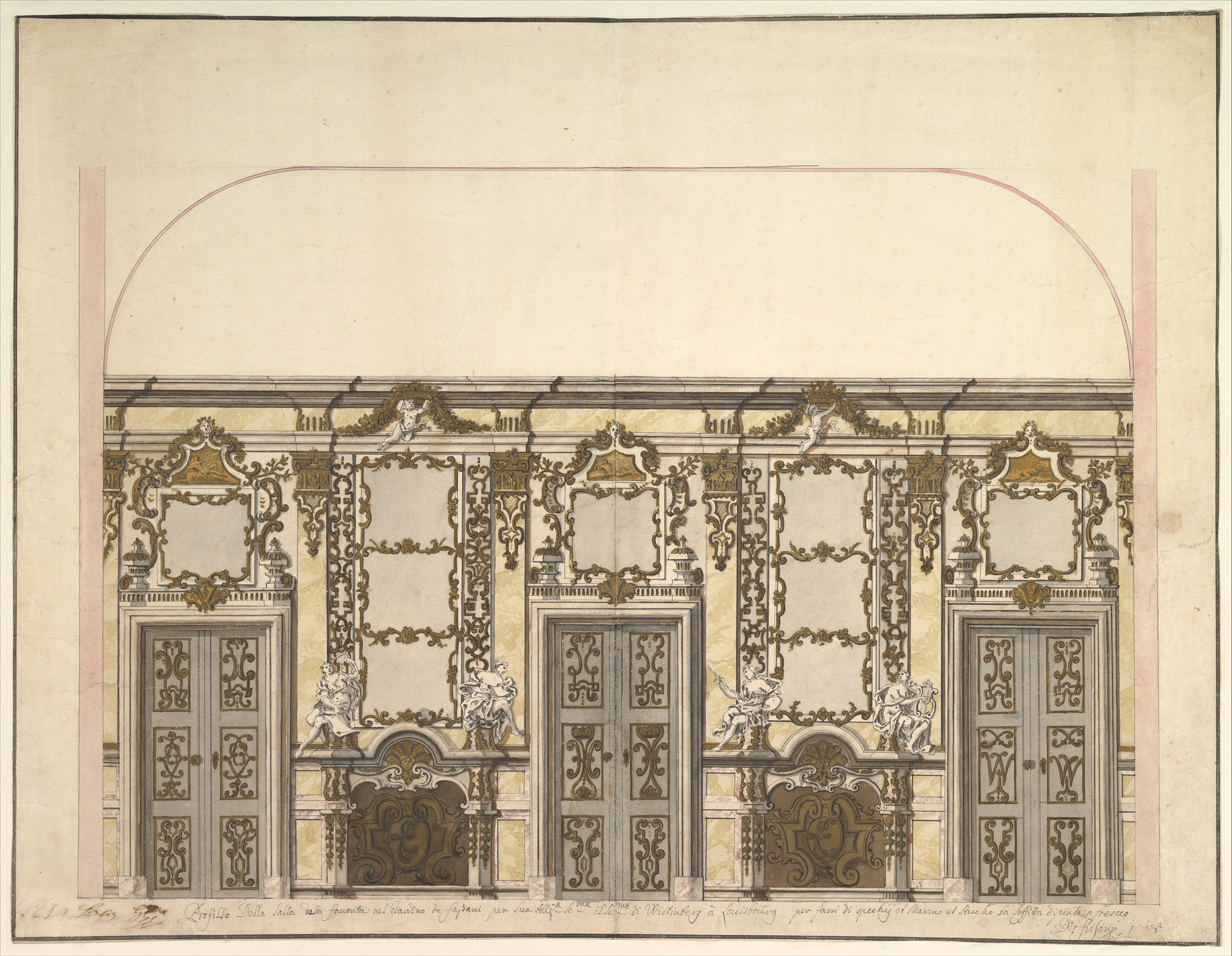 Donato Giuseppe Frisoni (Italian; 1683-1735), design for the salon of the pleasure pavilion, Favorita, at Ludwigsburg, 1718, pen-&-ink, watercolour, gold highlights, 49.5 x 64.5 cm., Metropolitan Museum, New York
