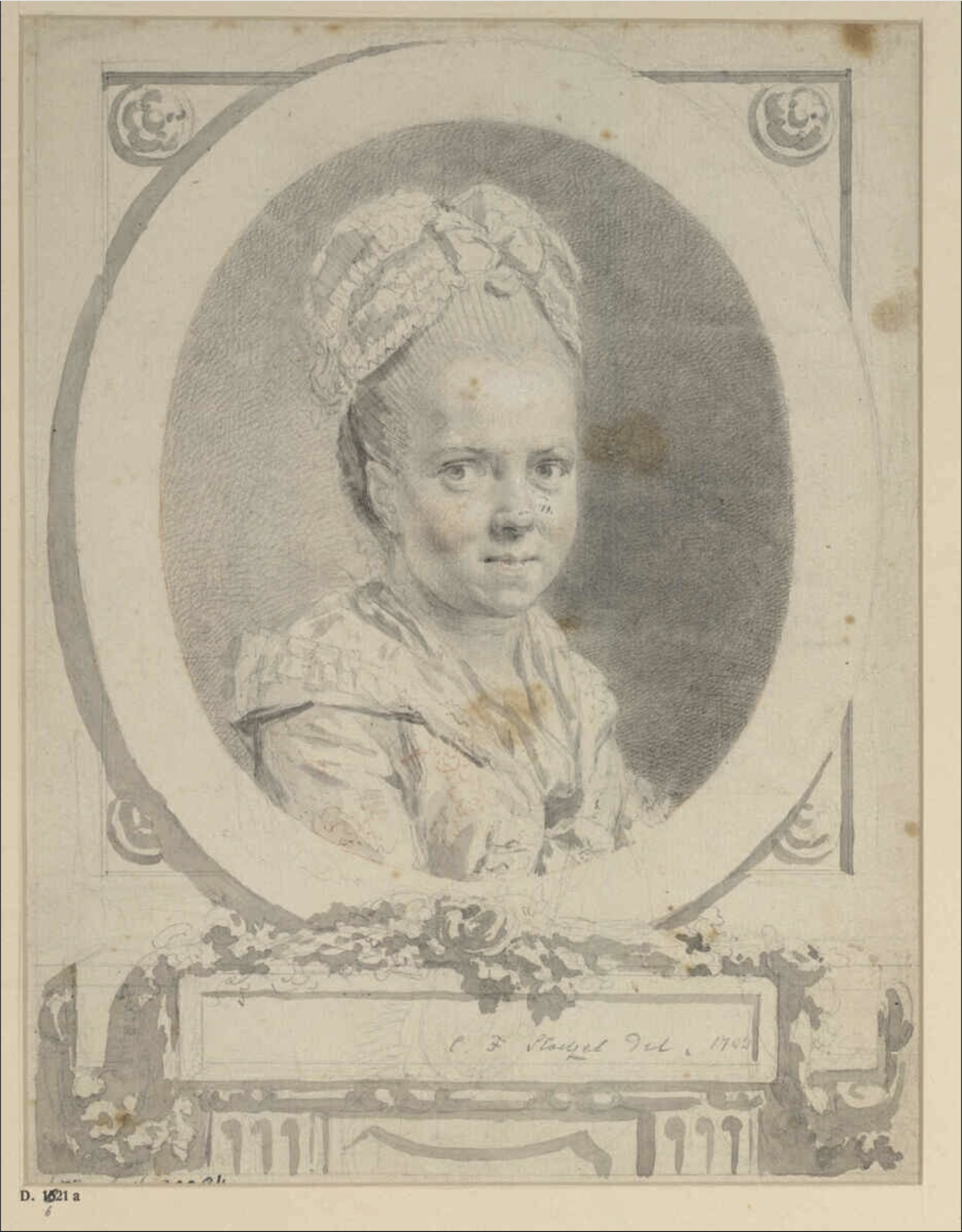 Christian Stoelzel (1751-1816), Portrait of a young girl in an architectural frame, pencil, red chalk, pen-&-ink, wash, 25.8 x 19.8 cm., Albertina, Vienna