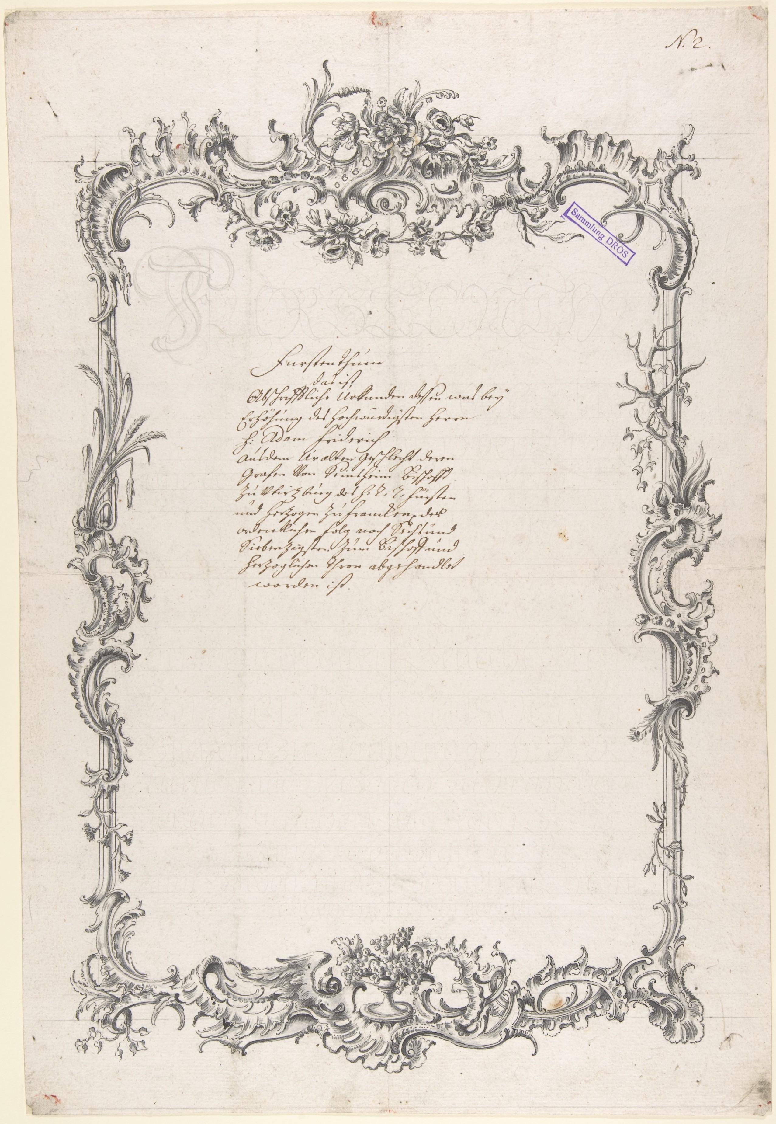 Johan Oktavien Salvert (fl. 1732-88), design for a Rococo frame, 1750-88, black chalk, ink, wash, incised, 47 x 34.8 cm., Metropolitan Museum, New York