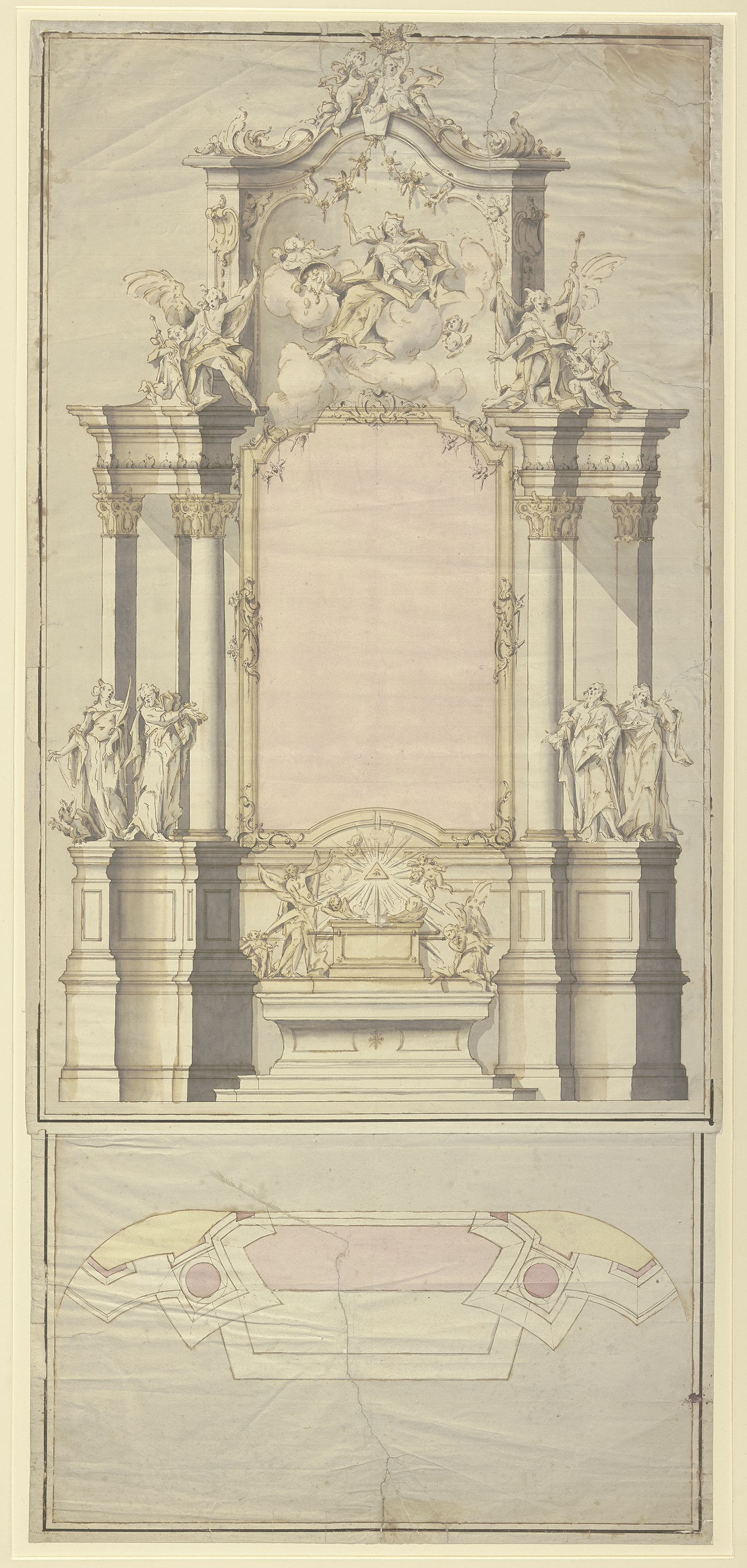 Johann Baptist Straub (1704-84), design for the plan & elevation of an altarpiece with SS Peter, Margaret, Paul & Ottilie, ?mid-18th century, Städel Museum, Frankfurt