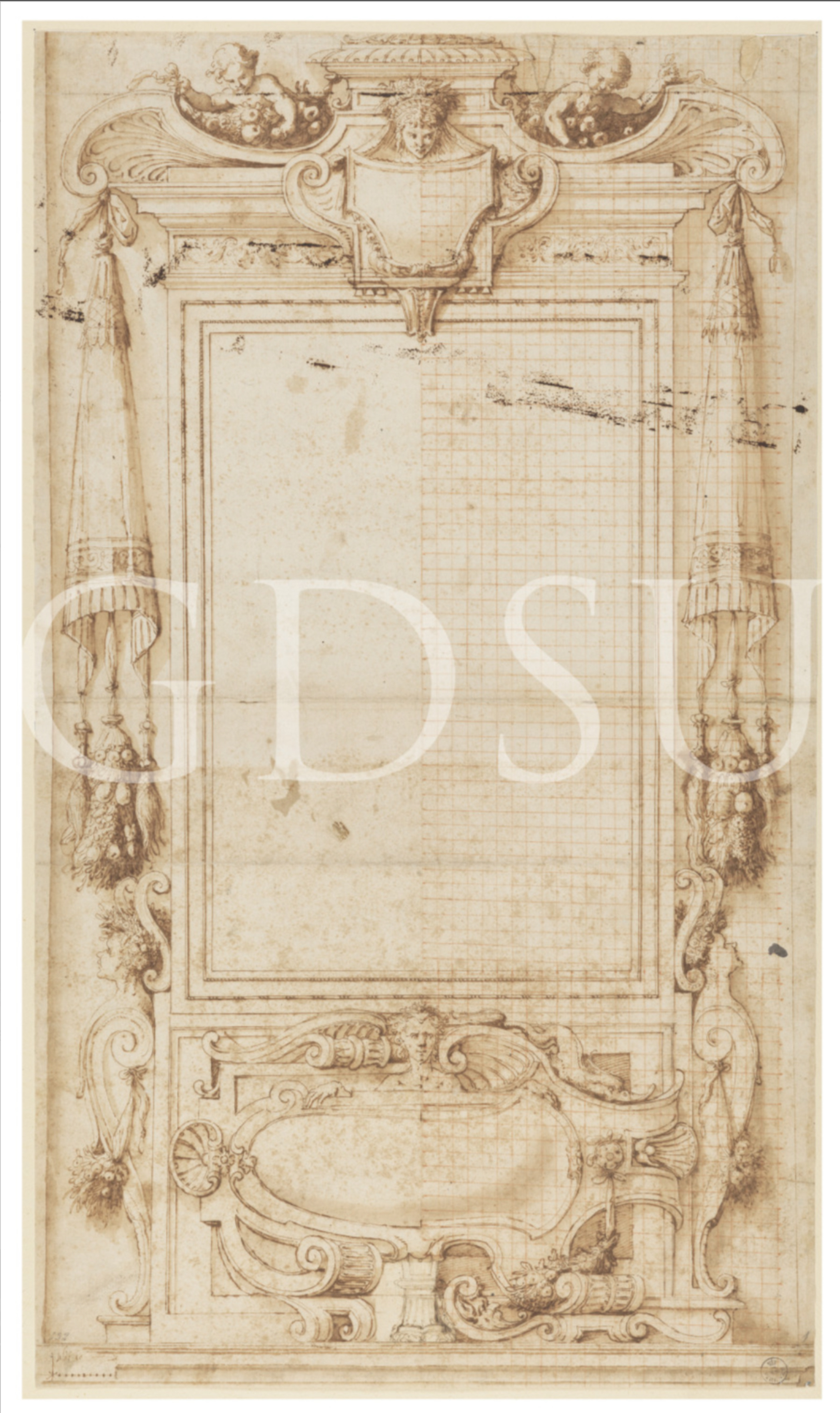 Jacopo Ligozzi (1547-1627), design for a Mannerist frame, pen-&-ink, wash, squared up with red chalk, 62.8 x 36 cm., Gallerie degli Uffizi
