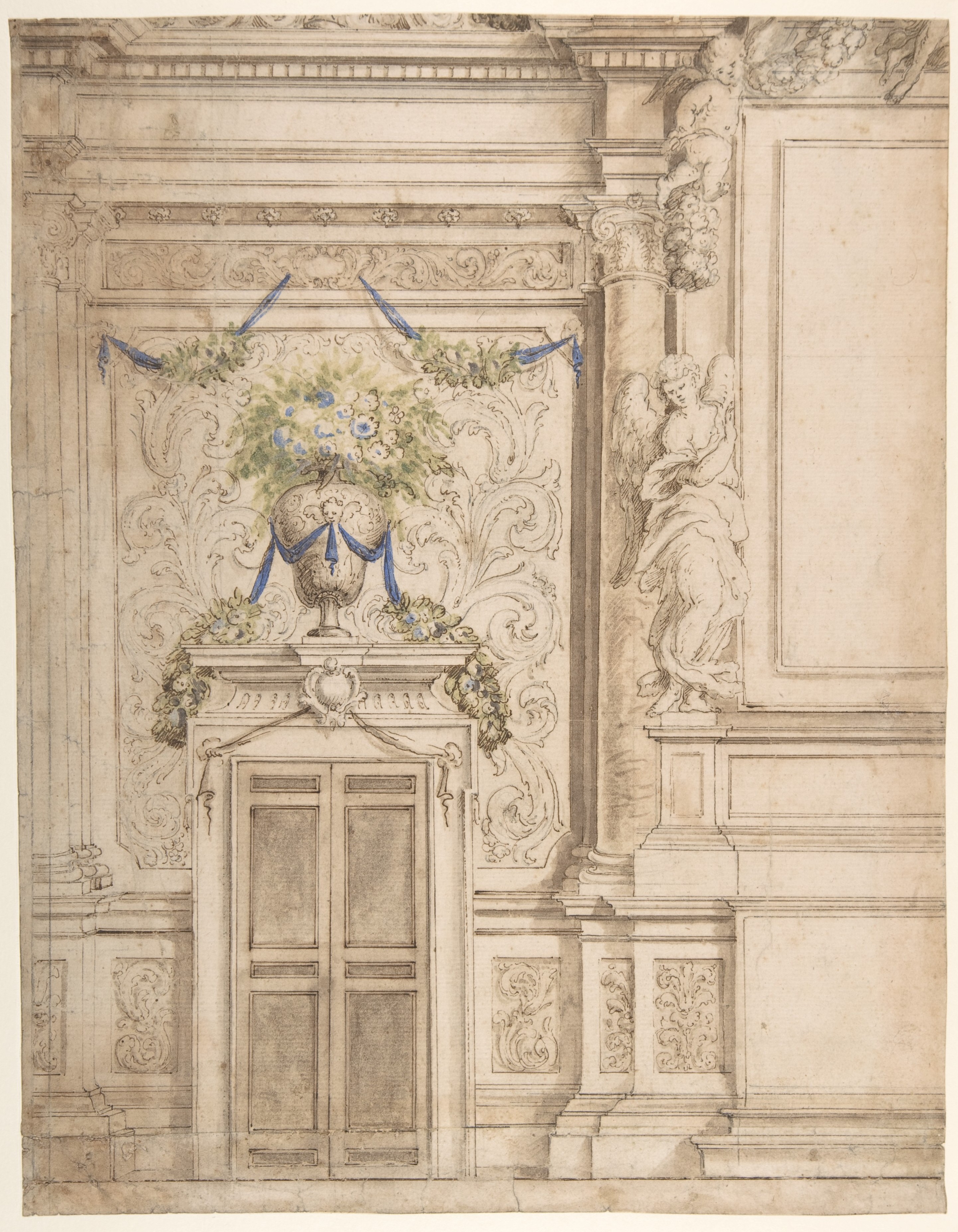 Francesco Ferrari (1634-1708), design for the decoration of a chapel wall (left half), c.1690, pen-&-ink, wash, watercolour, black chalk, 35.2 x 27.6 cm., Metropolitan Museum, New York