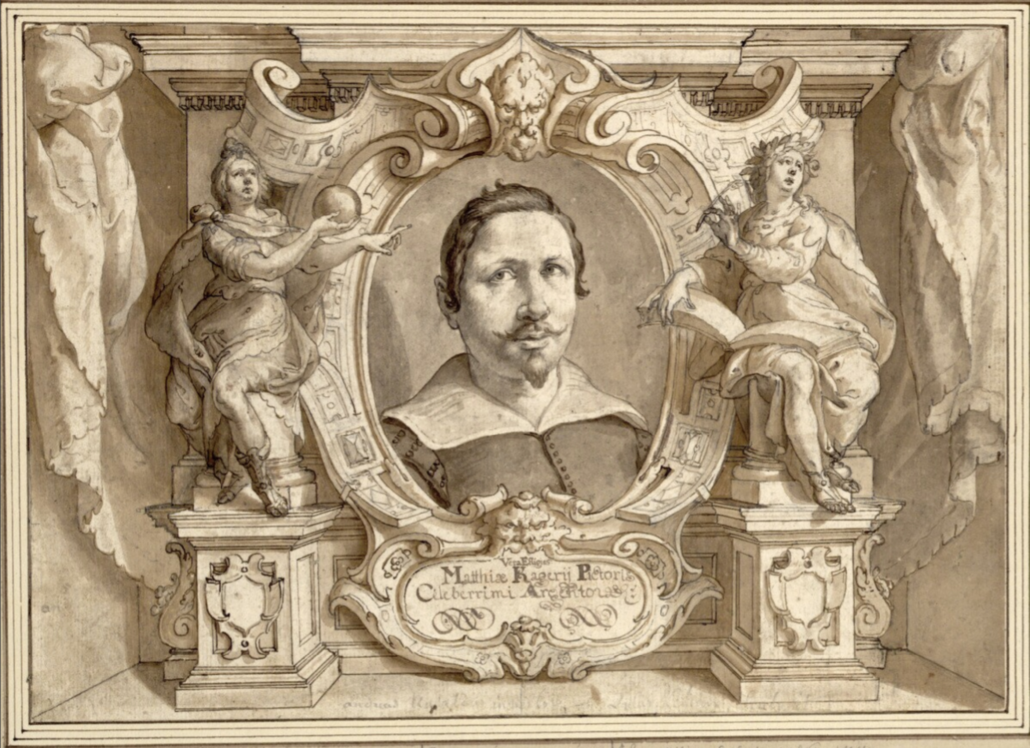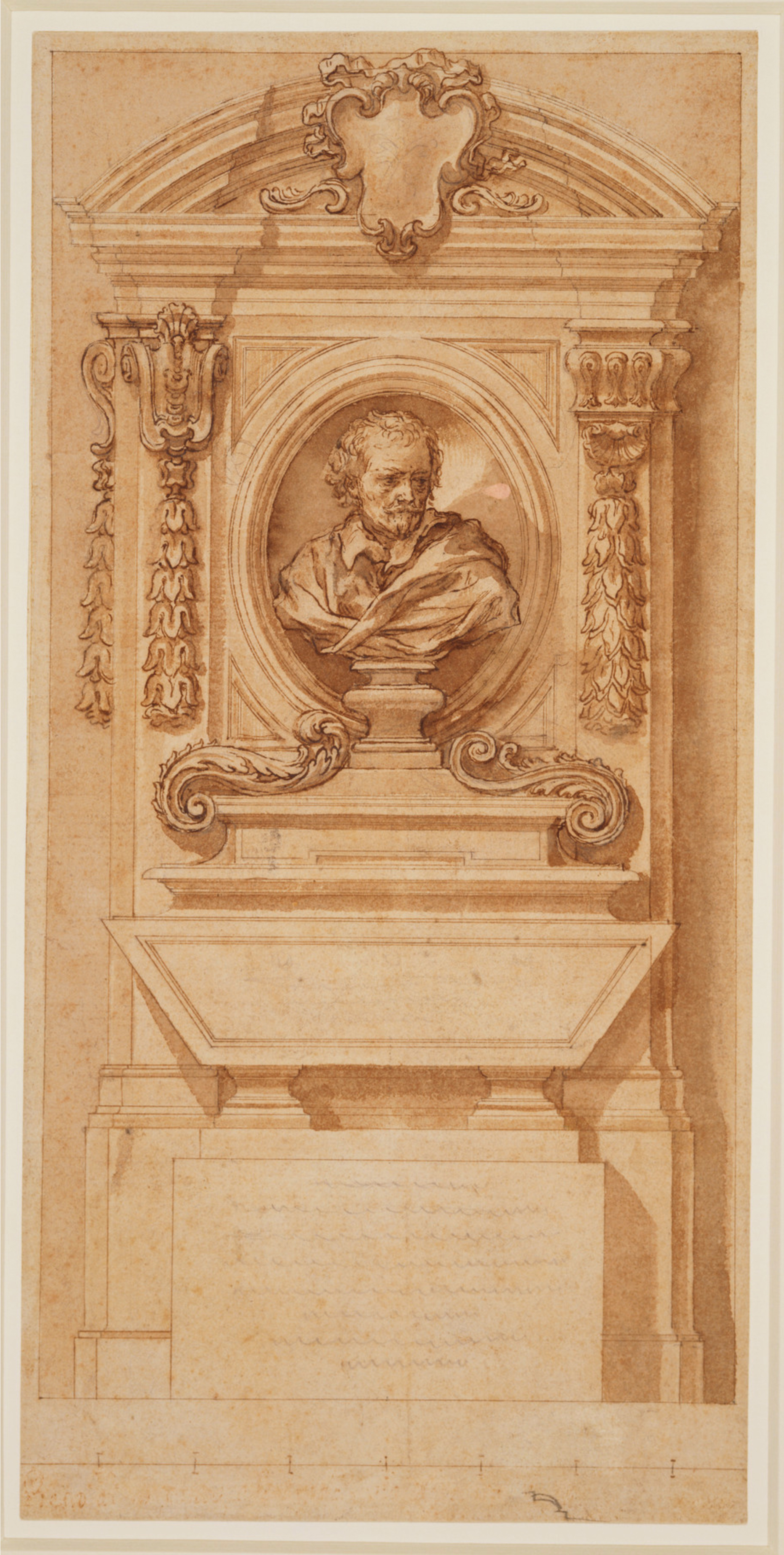 Andrea Ansaldo (1584-1638), design for a portrait bust of the artist Matthias Kager, to be carved by Lucas Kilian (Augsburg; 1579-1637), 1620, pen-&-ink, wash, stylus, 24 x 33.7 cm., Albertina, Vienna