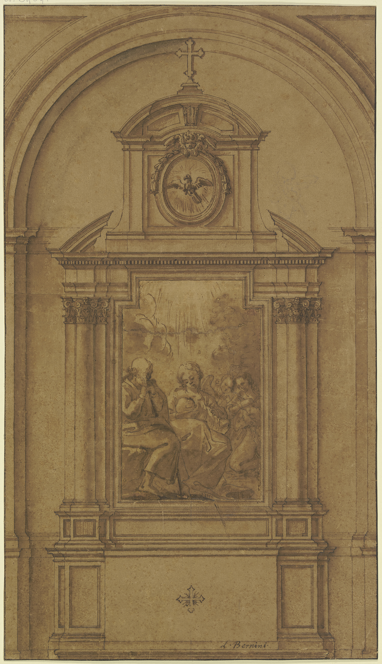 Bernini (1598-1680), design for altarpiece with the Holy Family, 17th century, pen-&-ink, wash, 40.3 x 23 cm., Städel Museum, Frankfurt