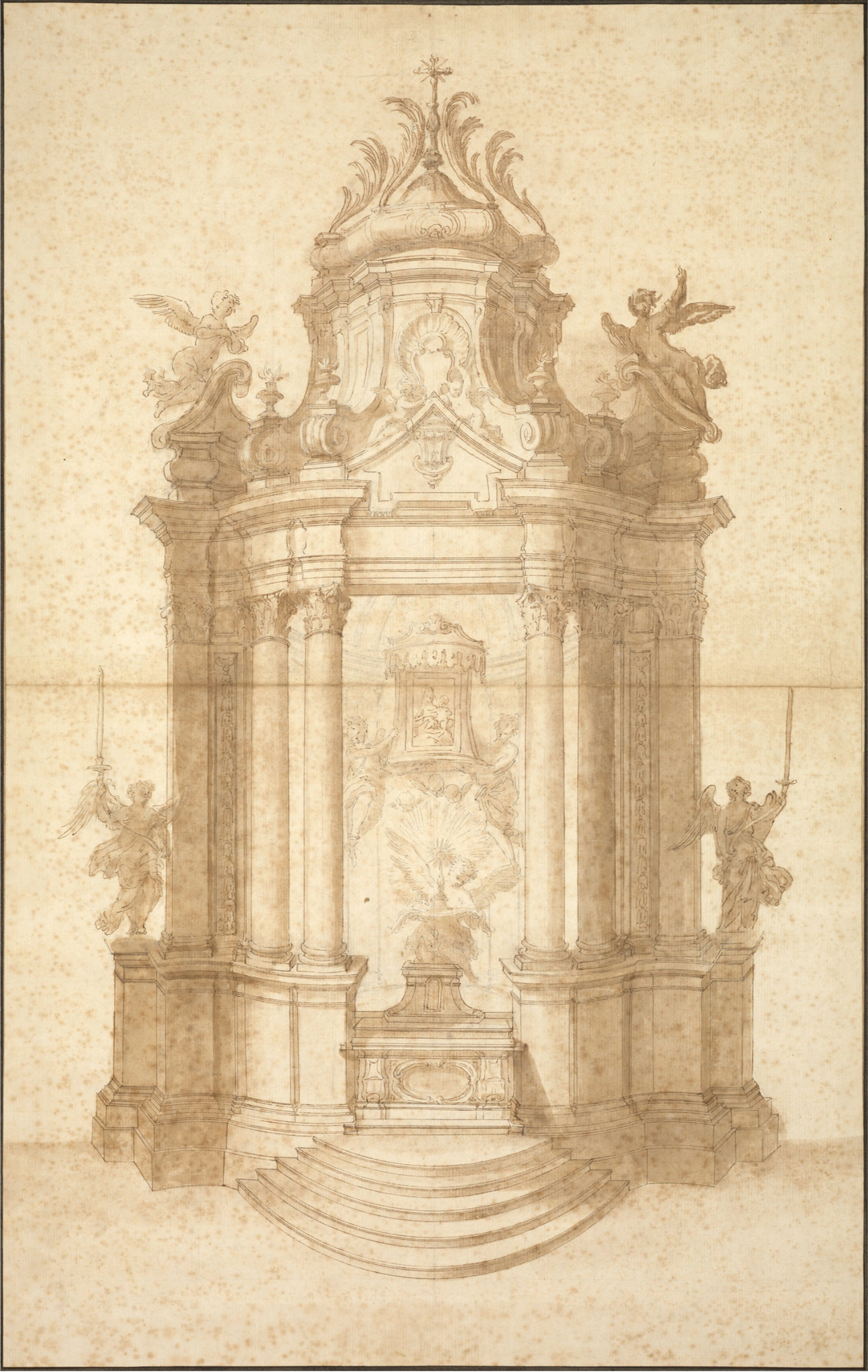 Bernini (follower of; 1598-1680), design for an altar, c.1650-1720, pen-&-ink, wash, black chalk, 74.1 x 46.9 cm., Royal Collection Trust. RCIN 911593