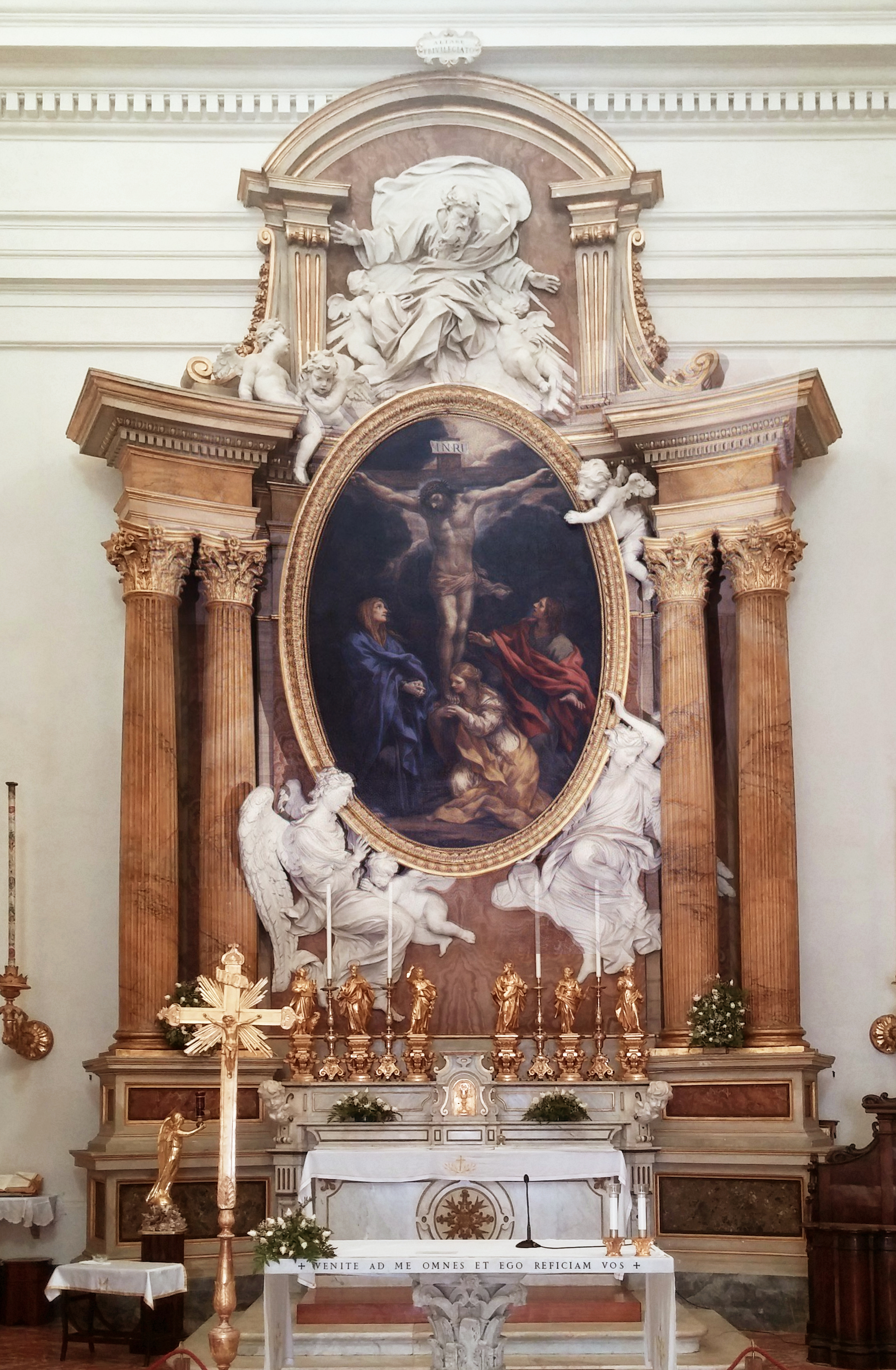 Bernini (1598-1680), interior and high altar, from 1658; Antonio Raggi (1624-85), stucco; Pietro da Cortona (1596-1669), Crucifixion, 1661, San Tommaso da Villanueva, Castel Gandolfo