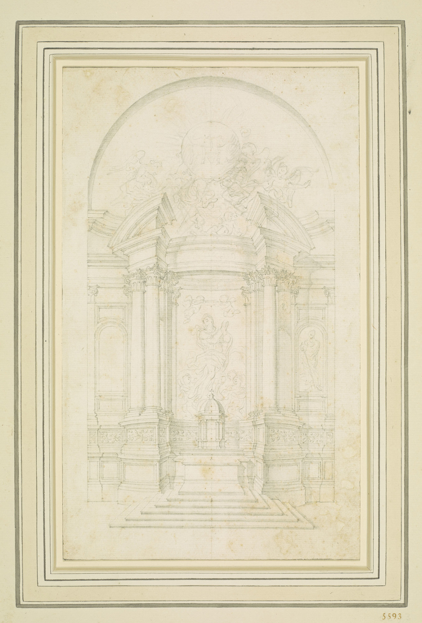 Bernini (workshop; 1598-1680), design for an altar, pencil, Royal Collection Trust. RCIN 905593