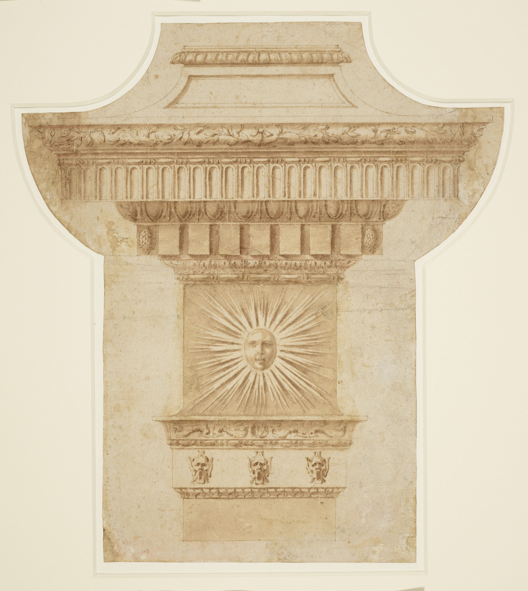 Anon., Italian school, 17th century, design for right half of a chimneypiece, pen-&-ink, wash, pencil, 29 x 8.4 cm., Metropolitan Museum, New York