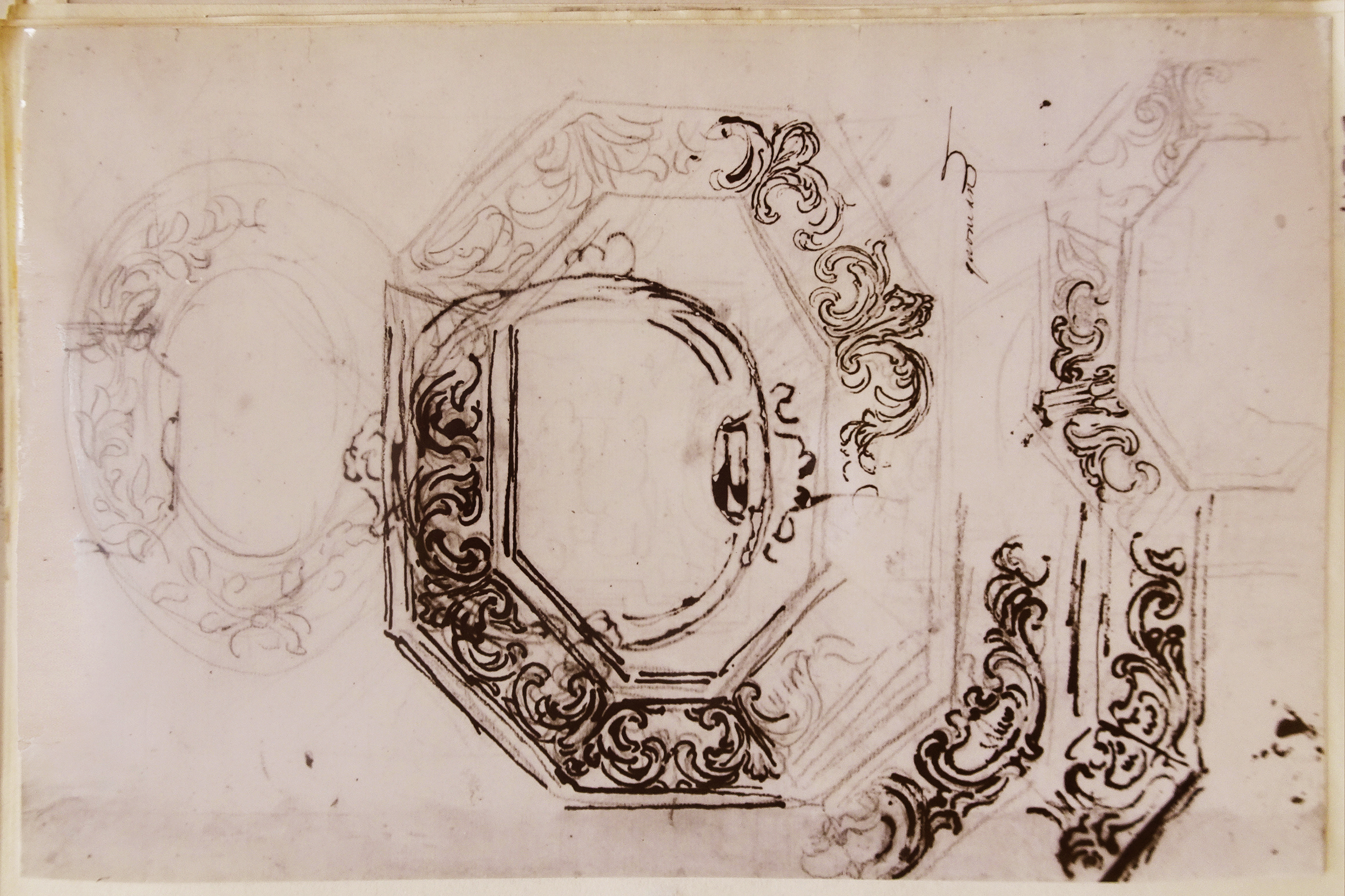 Il Volterrano (1611-90), designs for an octagonal frame with angels, recto, red chalk, pen-&-ink, with annotations, 29 x 20 cm., private collection. Photo: Paul Mitchell